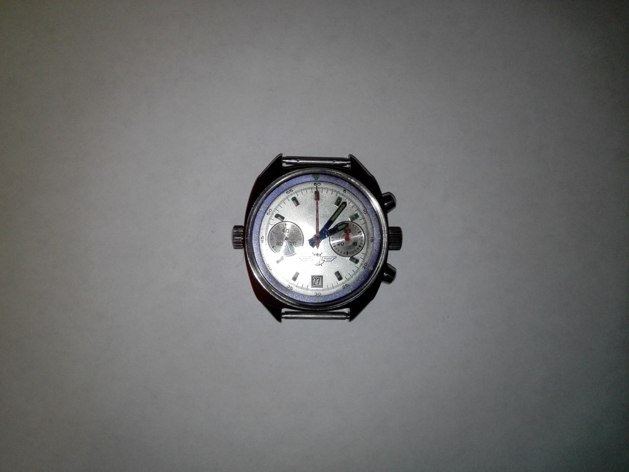 Сколько стоят такие? Ношеные, но ржавчины - нигде нет, все - родное, все работает. Цифер - нетронутый, только слабый налет как бы окисла от времени. Тоже хочу почистить. Корпус - нержавейка, все кнопки - тоже нержавейка. Сзади часы исцарапаны, но ни одной глубокой царапины - нет, ногтем - ни одну не могу почувствовать, все легко заполируется. Сейчас добавлю фоты. Качество фот - плохое, но ночью иначе и не получится. К часам есть родной полетовский браслет.