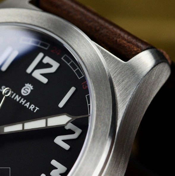 Новинка от Steinhart — модель в военном стиле Military 42 automatic. По-немецки четко: уже из названия модели следует, что это милитари-стиль, а диаметр стального корпуса — 42 мм. Ранее у Штайнхарт была такая модель, но на механизме с ручным подзаводом. Дизайн при этом самый, что ни на есть классический, а стиль — легко узнаваемый (знатоки легко определят черты известных часов середины прошлого века). Гюнтер Штайнхарт, таким образом, продолжает тему выпуска римейков классических часов (или хомажей). Крупные стрелки, крупные цифры и круглый корпус вкупе с заводной головкой в виде бриллианта — нынче таким дизайном промышляют — от Longines до Zenith. Если вы хотите покритиковать Штайнхарт за очередной хомаж, то вспомните о том, сколько стоят аналогичные часы от именитых брендов, тогда как продукция немецкого хомажиста позволяет приобрести часы в винтажном стиле с хорошим качеством и по довольно скромной цене.