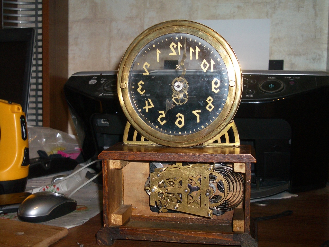 Доброго времени суток,Форумчане.Наконец дошли руки до восстановления часов mystery clock от Hamburg Amerikanische Uhrenfabrik.Долго не решался браться за них.Уж больно в убогом состоянии они мне достались.2 стеклянных диска новодельных, надписи на цифере нарисованы от руки.Много проблем с механизмом.В общем поиздевались над ними. Часы не часто встречающие.Может у кого нибудь есть фото оригинального цифера этих часов? В инете никакой инфы найти не могу.Но восстановить хочу близко к оригиналу