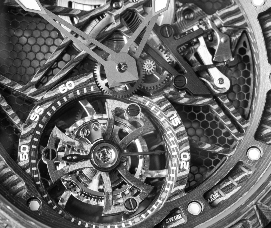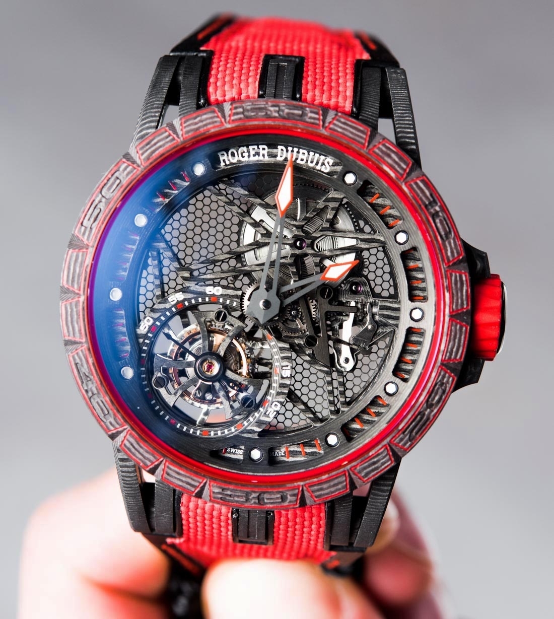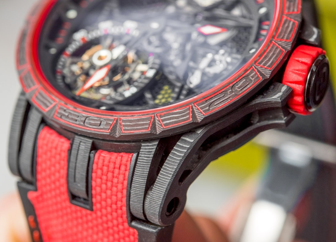 В часах нашла отражение набирающая популярность тенденция использовать при производстве механизма многослойный карбон.