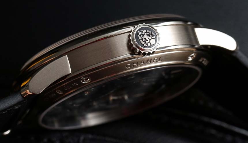 Корпус толщиной всего 40 мм. Задняя крышка из сапфира, что позволяет любоваться работой механизма часов. Часы Chanel Monsieur укомплектованы ремешком из кожи аллигатора. Французский модный дом планирует выпустить серию Limited Edition в количестве 100 штук. Цена Chanel Monsieur в платине – $ 63000.