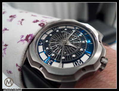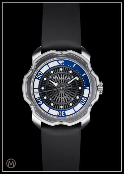 Новинка даже внешне отличается от типичных дайверских часов. У нее имеется специальный механизм для управления внутренним кольцом для определения времени погружения, которое инкорпорировано в платину калибра. Это позволяет оперировать всеми настройками часов исключительно с помощью заводной головки. В связи с этим, дайверу не грозит проблема случайного поворота безеля во время погружении. Кроме того, обращает на себя внимание толщина корпуса - она составляет лишь 10 мм, что является исключительным показателем для дайверских часов. Корпус титановый, диаметром 46 мм, водонепроницаем до 200 метров. Стрелки и индексы покрыты Superluminovaэ Циферблат защищен многослойным сапфировым стеклом толщиной 1,5 мм с внутренним антибликовым покрытием. Изнутри стекла отпечатан логотип Sarpaneva. Модель оснащена модифицированным автоматическим механизмом Soprod A10 на 25 камнях, с частотой 28800 полуколебаний в час (4 Гц) и запасом хода 42 часа. Ремешок каучуковый. Отличные часы с одним недостатком - с их покупкой придется подождать. Модель Sarpaneva Korona K0 будет доступна с 2011 года. Вложение 52951Вложение 52952 Источник: http://www.monochrome.nl/sarpaneva-k...nochrome.nl%29 |