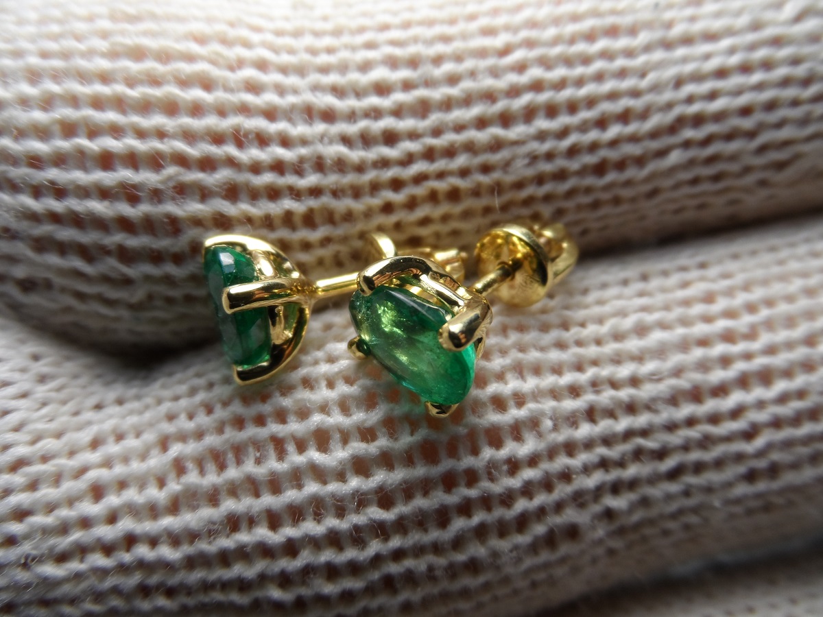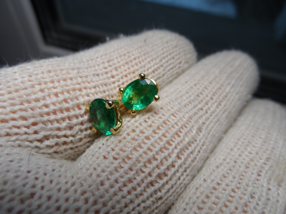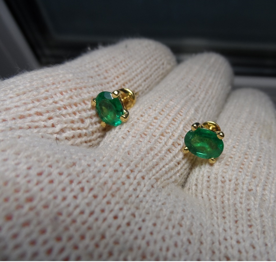 Новые золотые пуссеты с природными изумрудами общим весом 2.40 карата.