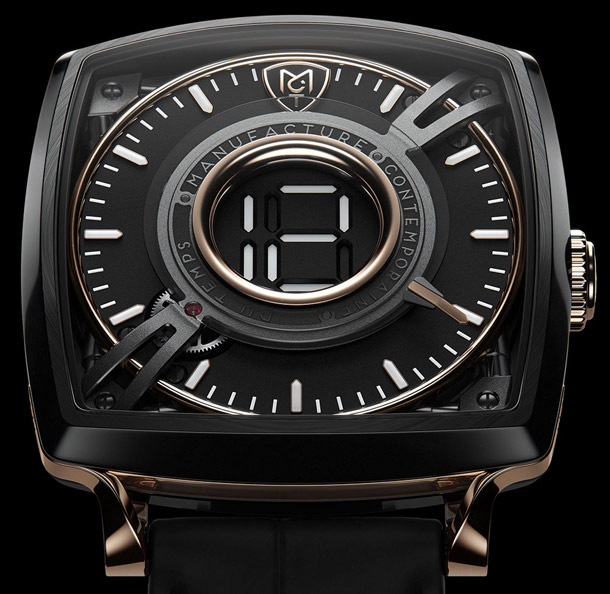Швейцарская часовая мануфактура MCT представила новые часы Dodekal One D110. Компания MCT дебютировала на рынке часов в 2009 году с невероятной моделью MCT Sequential One. Часы MCT Dodekal One D110 выпущены в квадратном корпусе размером 43 мм в стиле, характерном для часов мануфактуры. На черном циферблате отображаются часы и минуты – часы при помощи цифрового дисплея с прыгающим значением часа, минуты – с традиционной минутной стрелкой.