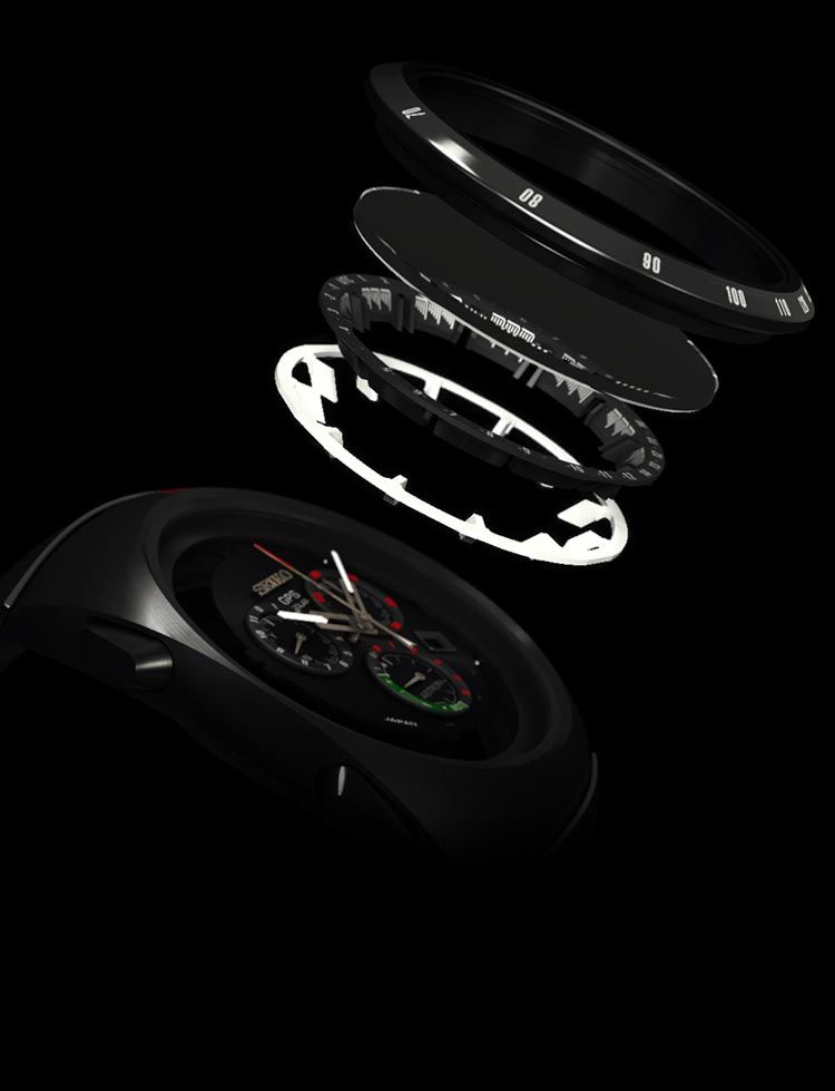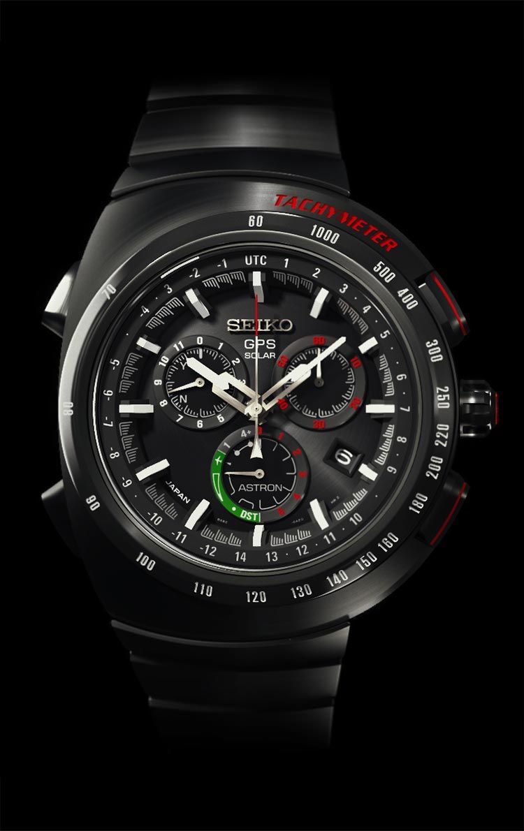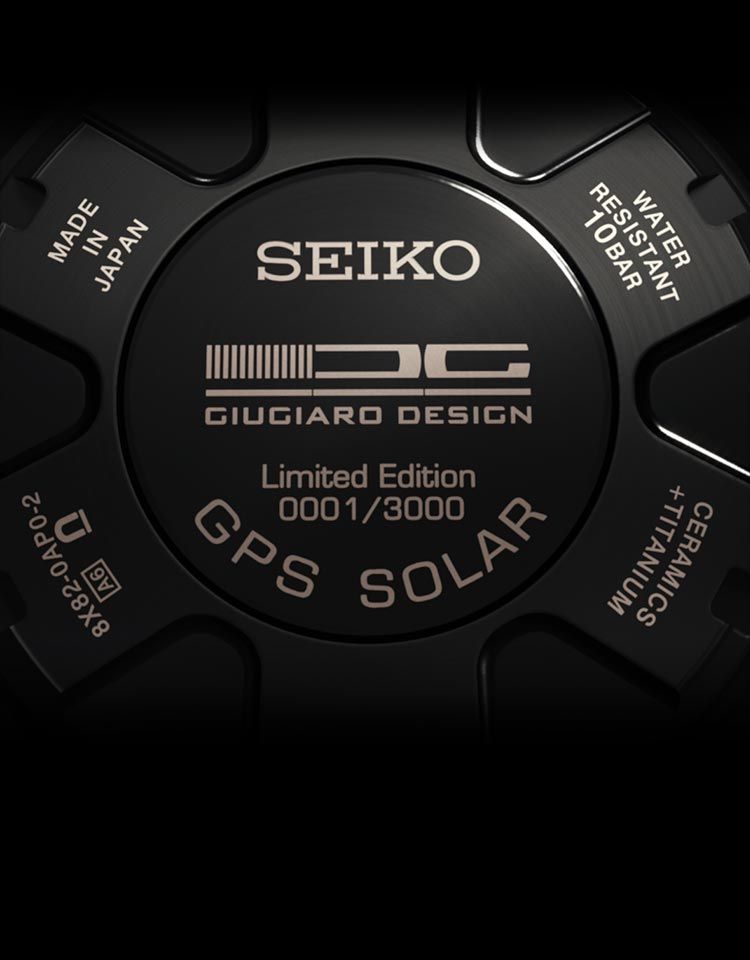 Новая модель Astron Giugiaro Design Limited Edition (Ref. SSE121) от японской часовой компании Seiko имеет круглый корпус, изготовленный из титана со сверхтвердым черным покрытием, диаметром 46,3 мм, водонепроницаемый до 100 метров. Рифленая заводная головка расположена на 3 часах, а пушеры хронографа - на 2 и 4 часах. На гладком безеле выгравирована тахиметрическая шкала. Сапфировое стекло с антибликовым покрытием защищает матово-черный многоуровневый сложный циферблат с накладными объемными часовыми индексами, покрытыми, как и часовая и минутная стрелки, люминесцентным составом белого цвета. Модель оснащена японским мануфактурным кварцевым механизмом Seiko 8X22 с технологией GPS Solar, магнитной защитой 4800 ампер на метр, функциями индикации текущего времени и времени в других часовых поясах (контролируются GPS), индикацией результата приема сигнала, вечным календарем (до 2100 года), индикацией мирового времени (40 часовых поясов), летнего времени, энергосбережения, а также с хронографом до 6 часов (с шагом 1/5 секунды) и с точностью +/- 15 секунд в месяц (без получения сигнала времени и при температуре от 5 ℃ до 35 ℃).