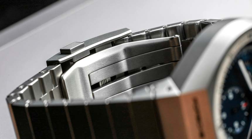 Прежде чем начать, окунемся немного в историю, чтобы лучше понять и оценить эти часы. Бренд Porsche Design начал самостоятельно выпускать часы в 2014 году. До этого времени часы бренда выпускались в партнерстве с такими компаниями, как IWC и Eterna. Первые часы компании появились в начале семидесятых годов ХХ века. Это была модель под названием Porsche Design Chronograph 1: первые полностью черные часы на рынке. В 1980 году Porsche Design выпустил еще один необычный хронограф под названием Chronograph Titan 1 – и это был первый хронограф в мире в титановом корпусе. Помимо использования титана, модель получила интегрированные в корпус толкатели хронографа. Как и исторический Chronograph Titan 1, новая модель Monobloc Actuator Chronograph также имеет в своем корпусе толкатель, но его исполнение немного отличается и довольно необычно. Для начала, новые часы Porsche Design Monobloc Actuator Chronograph выполнены в титановом корпусе шириной 45,5 мм и толщиной 15,6 мм. Это отнюдь не маленькие часы, но благодаря титановой конструкции они ощущаются относительно легко, хотя и занимают все запястье. Интеграция в корпус хронографа толкателей объясняет, почему часы Porsche Design Monobloc Actuator Chronograph не имеют четкой лицевой панели. Рамка тоже интегрирована в корпус и на ней выгравирована 24-часовая шкала. Функция отсчета времени запускается следующим образом: необходимо надавить с краю на область циферблата на отметке 3 часов. Нажимаем еще раз и отсчет остановится. Чтобы сбросить хронограф необходимо нажать на рамку циферблата аналогичным образом, но уже в области 9 часов. Как работает данный принцип управления функцией отсчета времени, легко понять по видео, прикрепленному к статье в самом конце. Это действительно крутое усложнение, которое позволило разгрузить боковой профиль от излишеств. Кроме того, подобное исполнение толкателей хронографа наделило новинку некоторыми практическими и функциональными преимуществами. Поскольку механизм толкателей спрятан внутри, это лучше защитило его от влаги и пыли. Водонепроницаемость часов Porsche Design Monobloc Actuator Chronograph составляет 100 метров, но функцию хронографа при этом можно активировать под водой! Как говорят в Porsche Design, уникальный механизм толкателей основан на конструкции клапанов в новом двигателе Porsche 911 RSR. Новые часы Porsche Design Monobloc Actuator Chronograph работают на швейцарском часовом механизме Valjoux 7754 с узнаваемой системой Valjoux 12-9-6. На выбор предлагается несколько различных оформлений циферблата и цвета корпуса. Есть также ограниченная серия Porsche Design Monobloc Actuator 24H Chronotimer в титановом корпусе с покрытием из карбида титана и циферблатом из углеродного волокна. Также доступны модификации с матовым черным циферблатом, с черным циферблатом с покрытием от солнечных бликов и синим циферблатом. Задняя крышка из сапфира, поэтому сквозь нее можно наблюдать за работой механизма Valjoux 7754. Часы будут поставляться с полностью титановым браслетом или резиновым ремешком. Оба варианта удобны в ношении, но титановый вариант выглядит солиднее. Циферблаты модели очень хорошо читаются. В области 12 часов находится 12-часовой счетчик, а в области 6 часов находится 30-минутный счетчик. Эти вспомогательные циферблаты слегка утоплены в основной, что делает их более заметными и повышает удобство считывания показаний с первого взгляда. В области 9 часов на циферблате находится диск с радиальным узором, который вращаясь отсчитыв