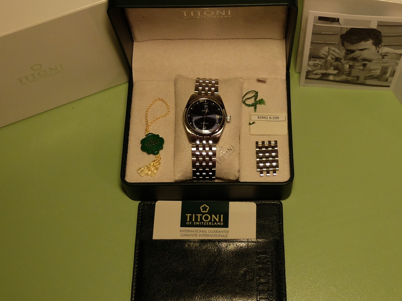 Пол: мужские Год покупки: 2016 БУ часы, состояние: AAA (идеальное) http://forum.watch.ru/images/market-question.png Полировка: нет Цена: 30 000 руб. (продажа) Коробка: есть Документы: есть В связи с оптимизацией, неспешно продам редкие и по-настоящему красивые Titoni ❀ Madison 83952 S-255! Titoni - швейцарская независимая семейная фирма. Выпускает преимущественно механические часы и не входит в концерн Swatch Group. Titoni закупает комплектующие и осуществляет сборку большей части механизмов у себя на фабрике. Официальный сайт: http://www.titoni.ch/en.html https://en.wikipedia.org/wiki/Titoni http://www.brandsinfo.ru/titoni.html Данные часы покупались здесь, на форуме, в 2016г в состоянии N- , практически состояние не изменилось, но поставил ААА (в микроскоп можно увидеть микроцарапины), браслет- в идеале. Надевались очень редко, в-основном бережно хранились в коробке. Осуществлялся периодический подзавод. Часы не вскрывались, не плавали, в виндере не крутились, не полировались, ход точный. Характеристики: - диаметр корпуса 36 мм (без заводной головки), ширина браслета - 20 мм (к застёжке сужается до 18 мм); - крупная заводная головка с логотипом; - калибр ETA 2824-2 (механика с автоподзаводом); - выпуклое сапфировое стекло; - циферблат глубокого темно-синего цвета; - люминесцентный состав на стрелках и часовых метках циферблата; - сочетание матовой и зеркальной полировки поверхностей; - полный комплект с гарантийным талоном; - дополнительные звенья браслета в наличии Часы очень красивые, удобные, в идеальном состоянии, неизбитая марка, точный ход, цены на некоторые модели этого бренда можно посмотреть в интернете ;) Отправлю почтой. Только РФ! http://forum.watch.ru/attachment.php...6&d=1492285004 Вложение 1765617Вложение 1765618Вложение 1765619Вложение 1765620 Вложение 1765622Вложение 1765623Вложение 1765624Вложение 1765625 Вложение 1765626Вложение 1765627Вложение 1765628Вложение 1765629 Вложение 1765630Вложение 1765631Вложение 1765632Вложение 1765633 Вложение 1765634Вложение 1765638Вложение 1765645Вложение 1765646 |