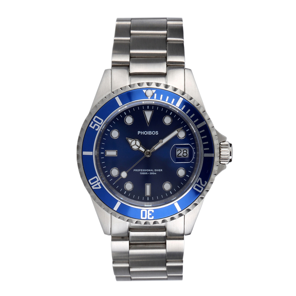 Бюджетный дайвер с черным или синим циферблатом на браслете