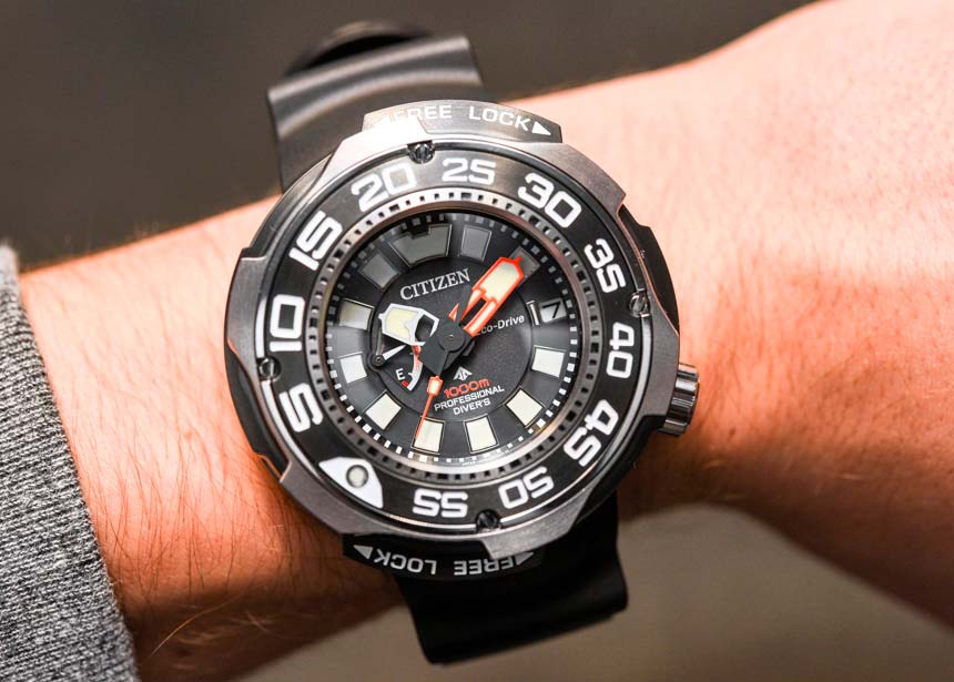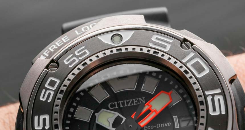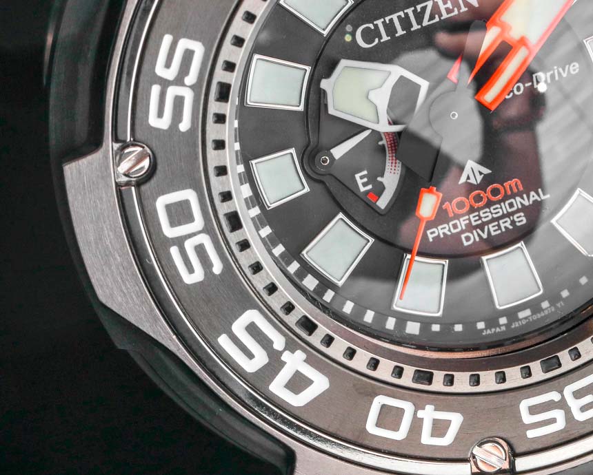 В Citizen Eco-Drive Promaster Professional Diver 1000m есть автоматический клапан для выпуска гелия. Профессиональные водолазы, которым нужны такие вещи, как точный отсчет времени в декомпрессионной камере, конечно же, оценят эти функции, но большинство потенциальных покупателей данной новинки, вероятно, никогда не узнают, на какие подвиги способны их Citizen Eco-Drive Promaster Professional Diver 1000m.