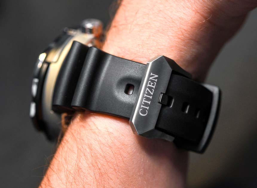 Преимущество Super Titanium у Citizen в том, что при всей массивности, корпус обладает очень малым весом, а прочность титана дополняет фирменная обработка, прибавляющая поверхности жесткости и устойчивости к царапинам. Опять же, никому не понравится, если его новые модные часы уже через месяц покроются царапинами, особенно когда они предназначены для такой агрессивной среды.