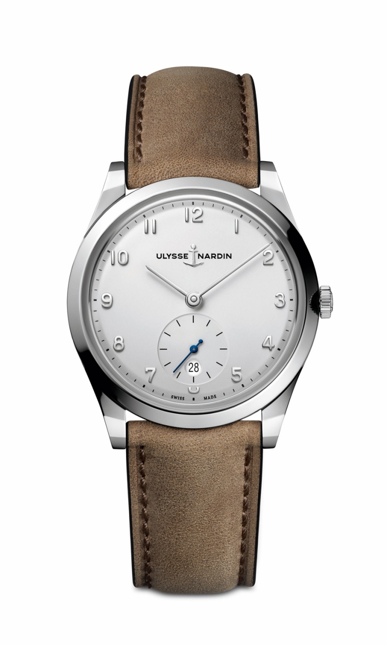 Круглый полированный корпус новинки, изготовленный из нержавеющей стали, диаметром 39,0 мм. Рифленая заводная головка расположена на 3 часах. Сапфировое стекло защищает серебристый циферблат с накладными серебристыми арабскими цифрами , серебристыми часовой и минутной, а также вороненой секундной стрелками. Модель оснащена мануфактурным швейцарским автоматическим механизмом Ulysse Nardin UN-320, на 39 камнях, с балансовой частотой 28800 полуколебаний в час (4 гц), кремниевым волоском и анкерным спуском, 48-часовым запасом хода, функциями индикации часов, минут (посредством соответствующих центральных стрелок), секунд (на соответствующем малом боковом циферблате, расположенном на 6 часах) и даты (посредством соответствующего цифрового указателя в круглой апертуре, расположенной на 6 часах).