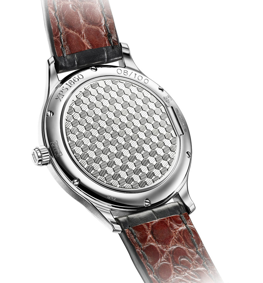 Корпус новинки круглый полированный, изготовленный из 18г-каратного белого золота, диаметром 40,0 мм, толщиной 7,7 мм, водонепроницаемый до 30 метров. На торце рифленой заводной головки, расположенной на 3 часах, выгравирован логотип мануфактуры L.U.C. Сапфировое стекло установлено на передней и на задней стороне часового корпуса; задняя крышка корпуса глухая откидная (на ней снаружи наличествует гравировка в виде пчелиных сот, а внутри - гравированная эмблема мануфактуры L.U.C). Посеребренный золотой циферблат, гильошированный в его центральной части, а также с накладными арабскими цифрами и продолговатыми часовыми индексами на его периферии. Модель оснащена ультра-плоским мануфактурным швейцарским автоматическим механизмом Chopard L.U.C 96.01-L, с двумя заводными барабанами, децентрализованным микро-ротором из 22-каратного золота, 65-часовым запасом хода, функциями индикации часов и минут (посредством соответствующих центральных стрелок) и секунд (на соответствующем малом боковом циферблате, расположенном на 6 часах). Калибр отлично отделан и декорирован. Поставляется на черном ремешке из кожи аллигатора с застежкой из 18-каратного белого золота. Лимитированный выпус 100 пронумерованных экземпляров. Цена модели Chopard L.U.C XPS 1860 Officer составляет 27760 евро. Вложение 1784743Вложение 1784744 Источник: http://www.watchtime.net/baselworld/...selworld-2017/ |