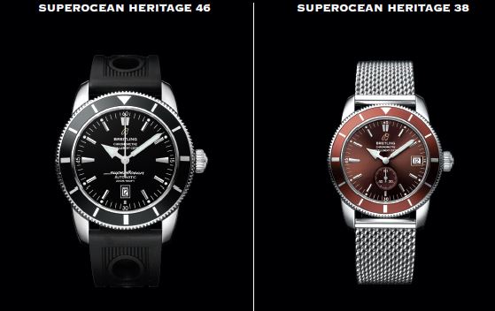 SuperOCean Heritage 38 A37320 Механизм: Breitling Калибр 37 (ETA 2895-2, стоит отметить, что это довольно редкий механизм для Breitling. На нем было выпущено всего 2 модели. Эта и Galactic 36мм в 2010 году), официально сертифицирован институтом COSC, с автоподзаводом,высокая частота (28,800 полуколебаний в час),27 камней. Календарь. Корпус: сталь. Водонепроницаемость до 660 футов (200 м/20 бар). Безель, вращающийся в одном направлении. Выпуклое сапфировое стекло, с антибликовым покрытием с двух сторон. Диаметр:38 мм. Циферблат: Черный, синий, бронзовый. Ремешок/браслет: Ocean Racer резиновый/Ocean Classic. SuperOCean Heritage 46 A17320 Механизм: Breitling Калибр 17 (ETA 2824-2), официально сертифицирован COSC, с автоподзаводом, высокая частота (28,800 полуколебаний в час), 25 камней. Календарь. Корпус: сталь. Водонепроницаемость до 660 футов (200 м/20 бар). Безель, вращающийся в одном направлении. Выпуклое сапфировое стекло, с антибликовым покрытием с двух сторон. Диаметр:46 мм. Циферблат: Черный, синий, бронзовый. Ремешок/браслет: Ocean Racer резиновый/Ocean Classic Вместе с моделью представлены и новые браслет и ремень (хорошо известные сегодня миланский браслет и перфорированный каучук): Вложение 1787092 Цитата: