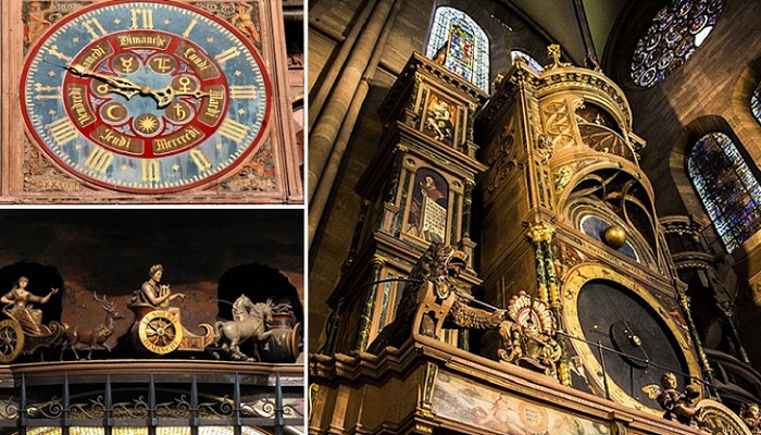 Огромные астрономические часы, расположенные в Страсбургском соборе во Франции, являют собой уникальный шедевр эпохи Возрождения, созданный математиками, художниками и другими передовыми специалистами своего времени. На сегодняшний день эти часы – одна из визитных карточек города. Многие туристы стремятся попасть в собор только для того, чтобы посмотреть на старинный действующий механизм.