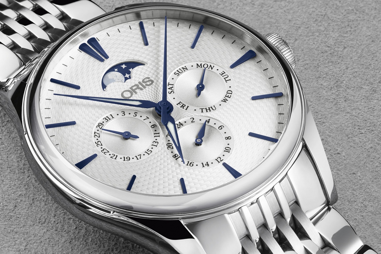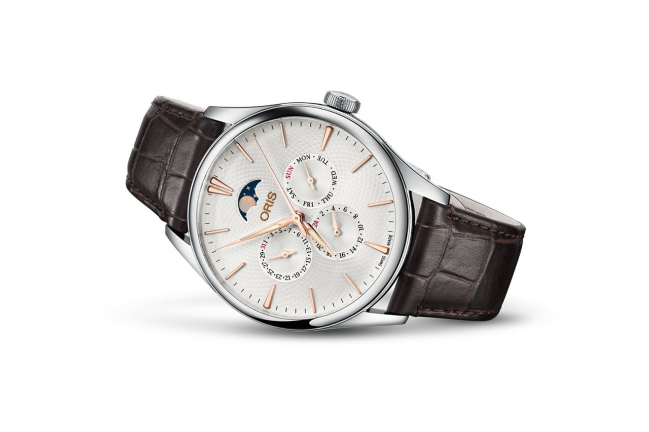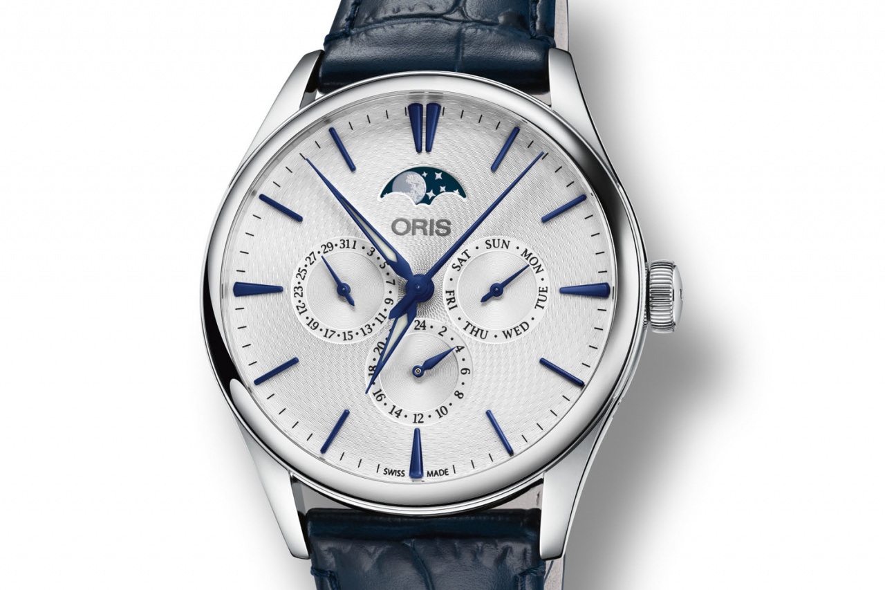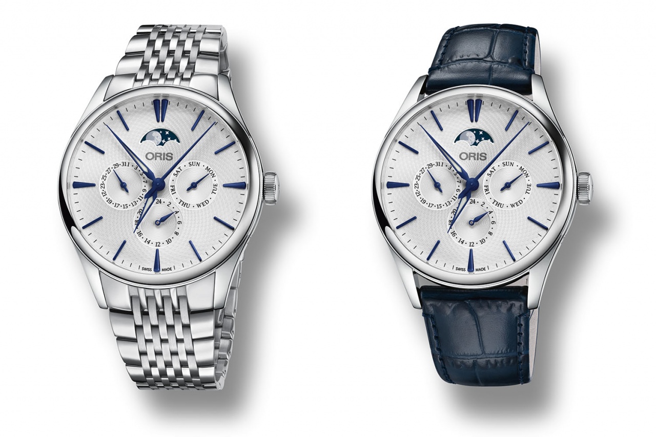Новая версия модели Artelier Complication от швейцарской часовой компании Oris представлена в двух вариантах: со стрелками и часовыми индексами и стрелками, выполненными из розового золота, а также на коричневом кожаном ремешке (Ref. 01 781 7729 4031) и со стрелками и часовыми индексами синего цвета, а также на синем кожаном ремешке (Ref. 01 781 7729 4051). В обоих случаях браслет из нержавеющей стали предлагается в качестве опции.