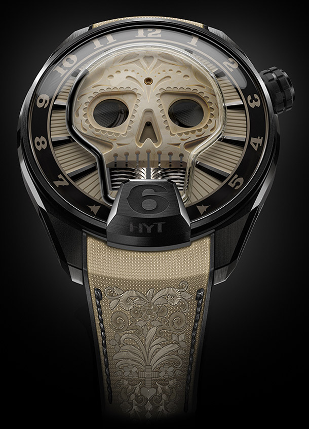 Часовая мануфактура HYT представила новую модель Skull Vida строго ограниченной серией из 5-ти штук. Фактически, это будут пять уникальных экземпляров, так как в их производстве используется настоящая слоновая кость.