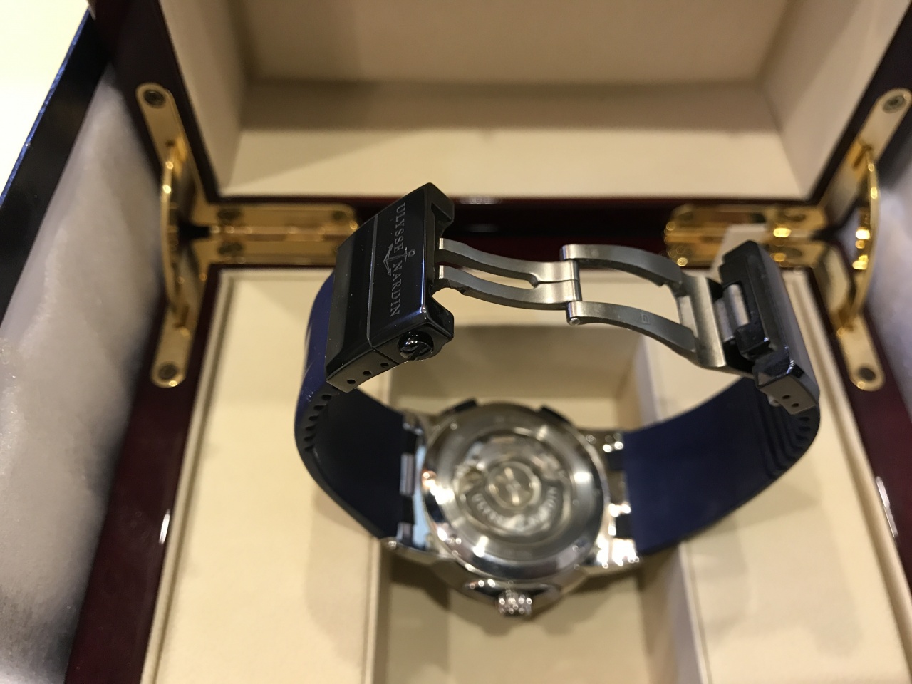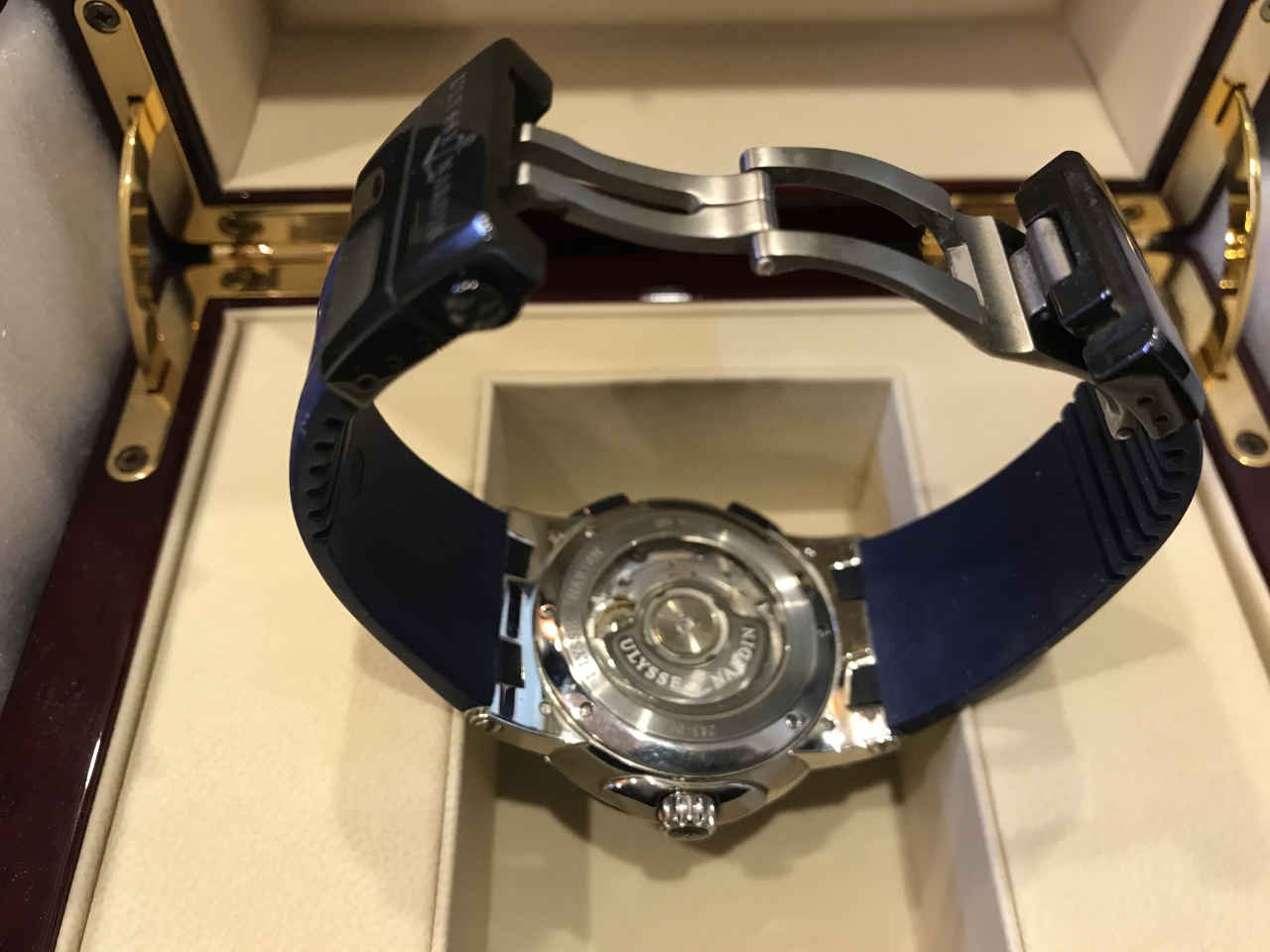 Пол: мужские Год покупки: 2013 БУ часы, состояние: A (хорошее) http://forum.watch.ru/images/market-question.png Полировка: нет Цена: 172 000 руб. (продажа) Коробка: есть Документы: есть В 2012 году компания Ulysse Nardin выпустила новую модель часов – Executive Dual Time, оснащенную запатентованной системой переключения второго часового пояса. В отличие от прошлогодней модели, доминирующий цвет новинки – синий. На ярко-синем циферблате выделяются стальные крупные римские цифры и центральные стрелки, на 6 часах расположен боковой секундный циферблат, у отметки 2 часа двойная апертура даты. Время во втором часовом поясе отображается в маленькой апертуре на 9 часах. Корпус с гладким синим безелем и кнопками переключения второго часового пояса на 8 и 10 часах выполнен из керамики выполнен из нержавеющей стали. Часы на полном комплекте, не полировались не ремонтировались, эксплуатировались бережно, Ремень обрезан примерно под запястье 18 см Цена вполне адекватная!!! Вложение 1833701Вложение 1833702Вложение 1833703 Вложение 1833704Вложение 1833705Вложение 1833706 Вложение 1833707Вложение 1833708Вложение 1833709 Вложение 1833710Вложение 1833711Вложение 1833712 |