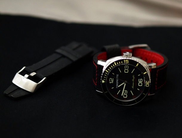 Новозеландская часовая компания Magrette выпустила модель Moana Pacific Diver с водозащитой корпуса до 500 метров и дайверским однонаправленным безелем с 120 щелчками для контроля времени погружения.