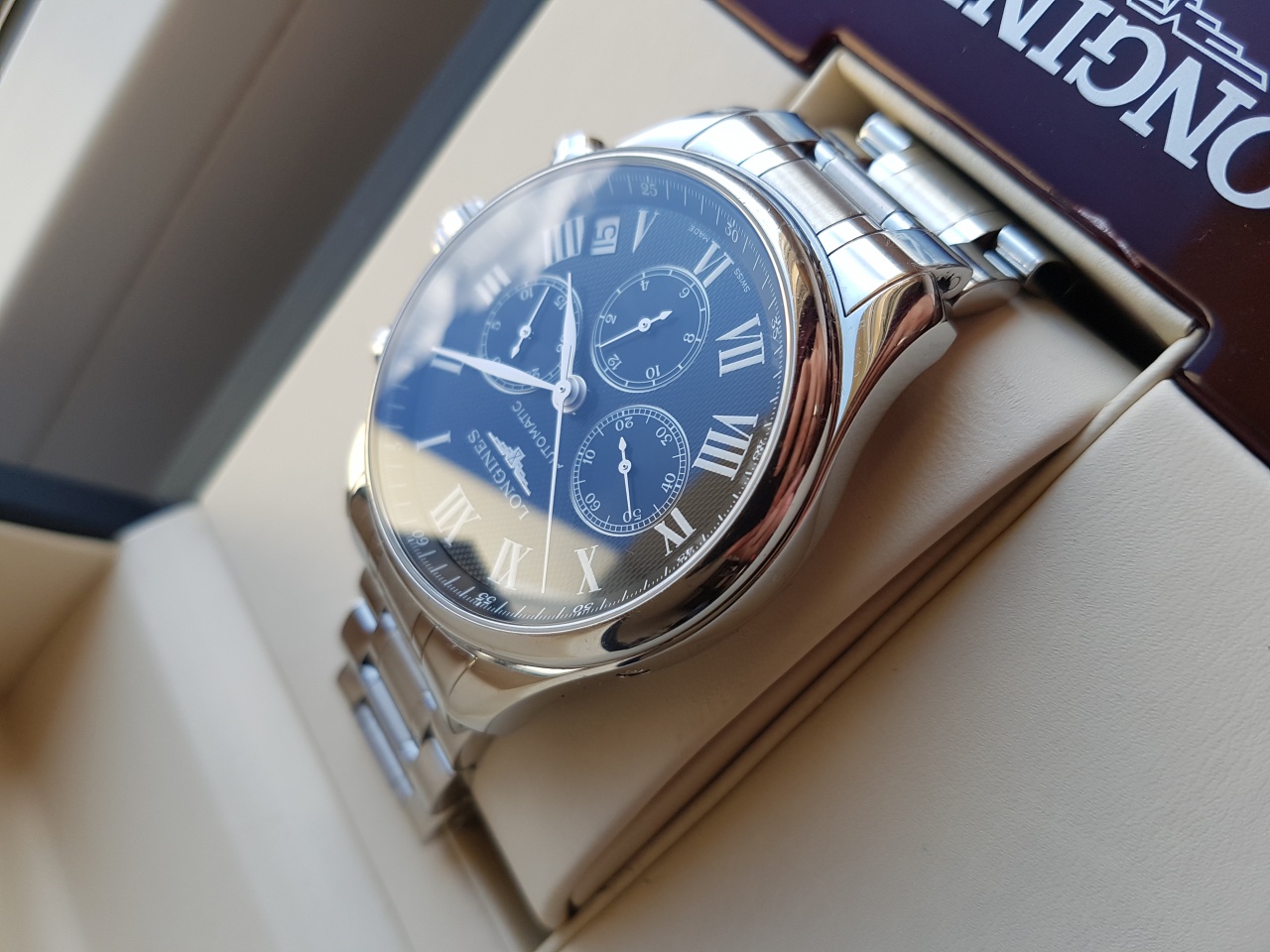 КЛАССНЫЕ и крупный 44мм LONGINES MASTER COLLECTION CHRONOGRAPH черный!!! На браслете!!! 15год