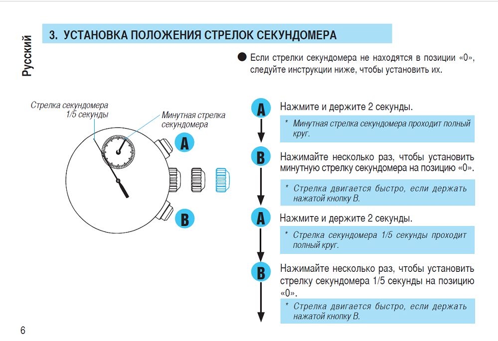 увы полный оборот 1/20-секундная стрелка не делает и часы просто запускают хронограф. что я делаю не правильно ? и этот пункт инструкции не выполняется Цитата: