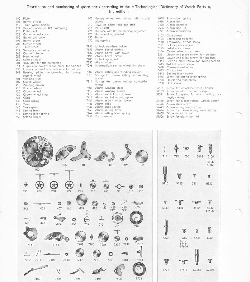 Вот тут, на примере AS1475, видны все детали, связанные с будильником: и система завода и молоточек и так далее: