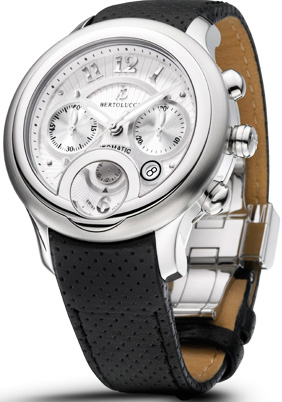 Модель Ref. 1144.51.41.11PE.101 представляет собой трехстрелочник, в круглом корпусе из нержавеющей стали, полированном и сатинированном. Его диаметр составляет 42,2 мм, толщина - 11,6 мм, водонепроницаемость до 50 метров. Сапфировое стекло спереди и на задней крышке корпуса. Циферблат серебристо-белый, декорирован родированными элементами, индексами и цифрами. Стрелки также родированные, с люминесцентным покрытием. Апертура даты на 6 часах. Модель оснащена надежным автоматическим механизмом ETA 2824-2. Черный ремешок из телячьей кожи с тройной раскладной застежкой из нержавеющей стали. Модель Ref. 1194.51.41.11PE.101 является хронографом, также, с полированным и сатинированным корпусом из нержавеющей стали, диаметром 42,2 мм и толщиной 14,9 мм, водонепроницаемым до 50 метров. Сапфировое стекло с антибликовым покрытием спереди и на задней крышке корпуса. Оформление циферблата аналогично таковому у предыдущей модели. Три боковых циферблата (секунд и хронографические счетчики) на 3, 6 и 9 часов. Апертура для индикатора даты между 4 и 5 часами. Модель оснащена автоматическим механизмом ETA 7753 с запасом хода 48 часов и функциями индикации часов, минут, секунд, даты и хронографа. Как и у предыдущей модели - черный ремешок из телячьей кожи с тройной раскладной застежкой из нержавеющей стали. Источник: http://watches.infoniac.com/new-giro...ertolucci.html |