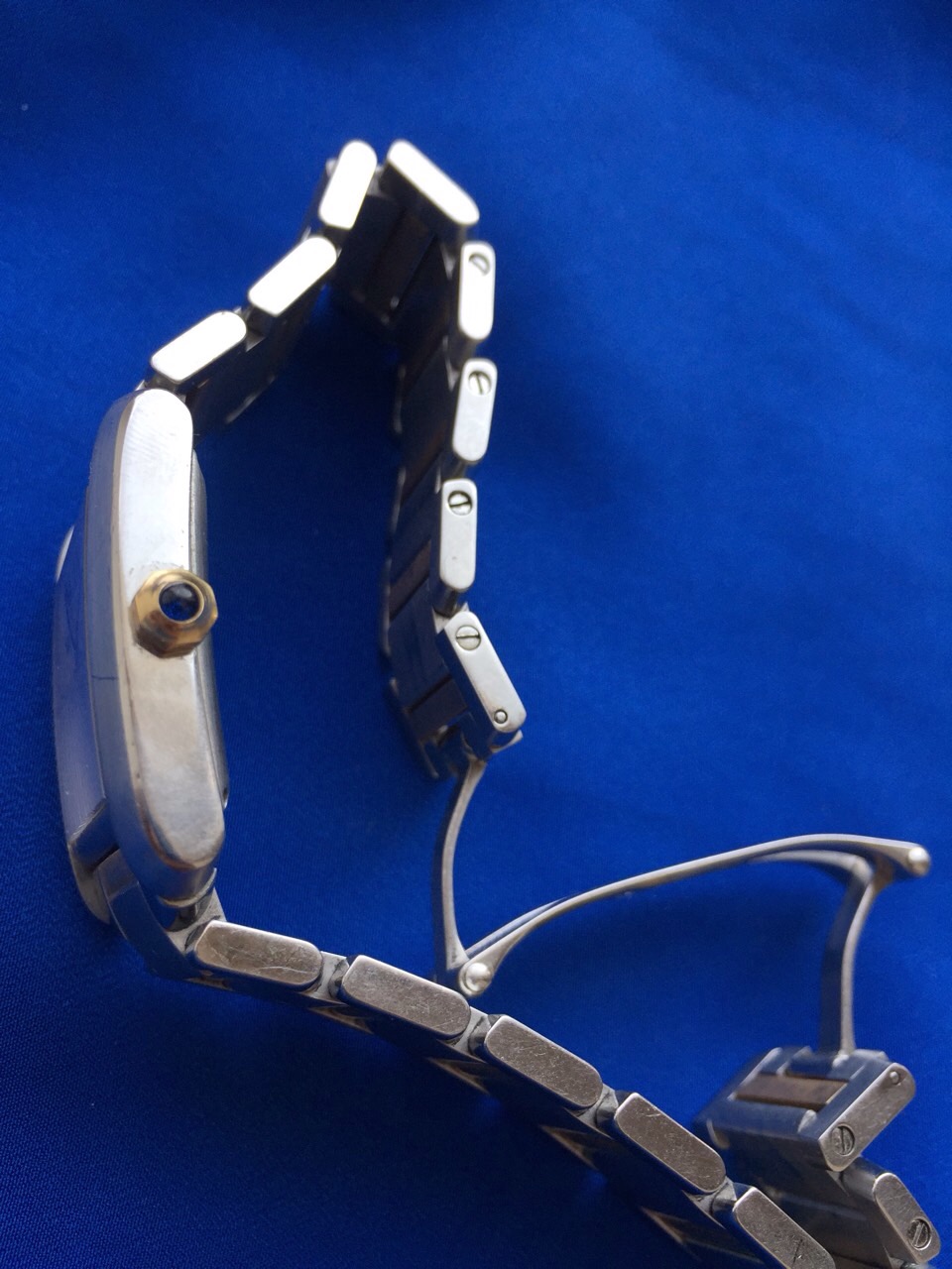 Пол: мужские Год покупки: 2010 БУ часы, состояние: AA (отличное) http://forum.watch.ru/images/market-question.png Полировка: нет Цена: 150 000 руб. (продажа) Коробка: нет Документы: нет Приветствую всех, уважаемые пользователи форума. Продаю часы Cartier Tank Francaise 2302. Покупал их в Англии в 2010. Носил их редко. Никогда не ремонтировал и не полировал. Коробка и документы не сохранились за такое время. Новые такие стоят 454000 рублей. Описание часов из официального сайта Cartier: Часы Tank Française, большая модель, механизм с автоматическим подзаводом. Корпус из стали, восьмигранная заводная головка из желтого золота 18 карат украшена синтетической шпинелью в форме кабошона, посеребренный гильошированный в технике flinqué циферблат, стрелки в форме мечей из вороненой стали, сапфировое стекло, браслет из желтого золота 18 карат и стали, тройная раскладывающаяся застежка из стали, окошко календаря в положении "6 часов". Размеры корпуса: 36,50 х 28,15 мм. Высота корпуса: 7,45 мм. Водонепроницаемость до 30 метров. Торг уместен:) Живу в Москве Вложение 1923782 Вложение 1923783 Вложение 1923784 Вложение 1923785 |