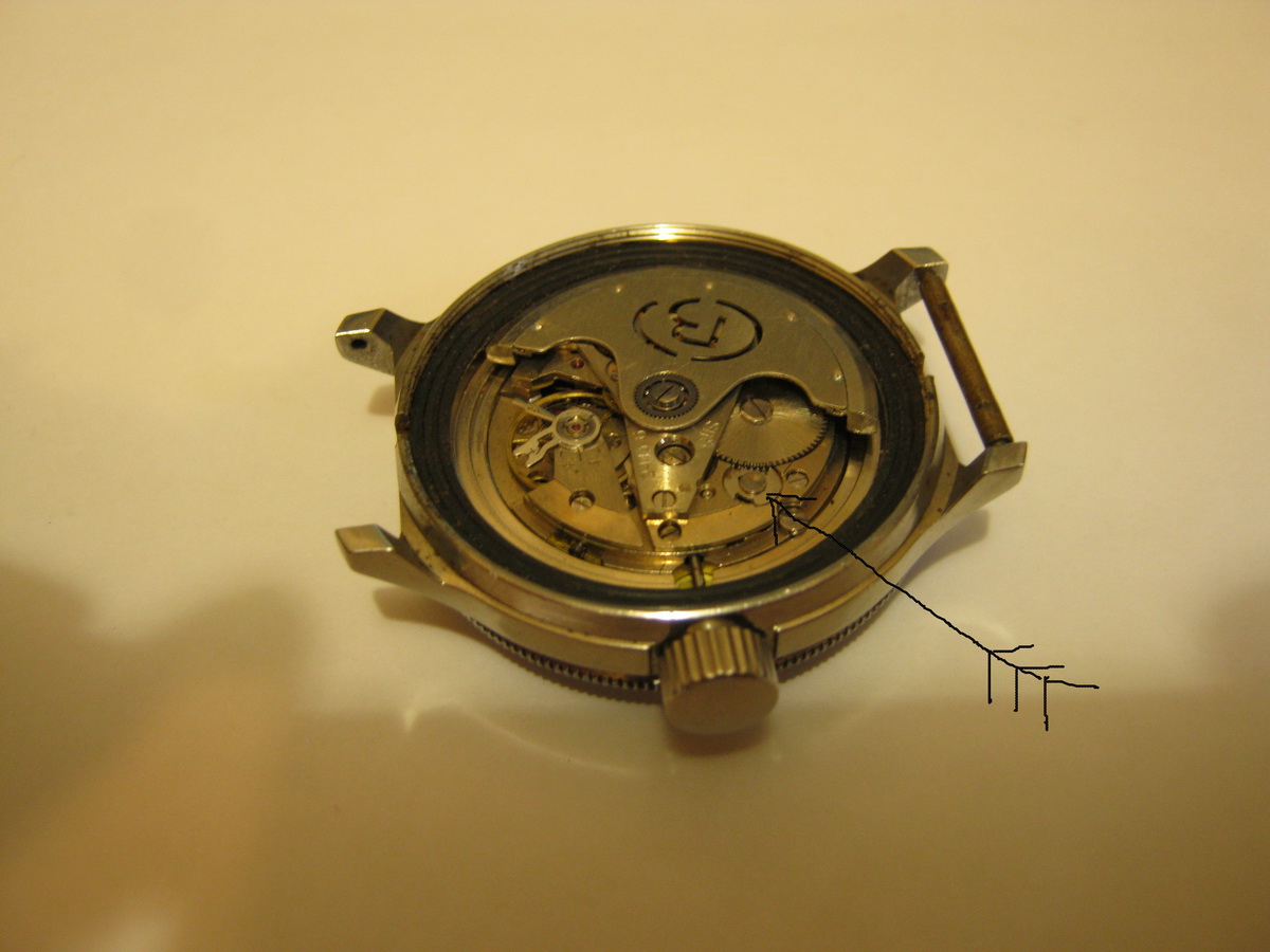 Вложение 1936831Всем стоять..:D Не надо разбирать и снимать .Сняли заднюю крышку ,открутили заводную головку,сделали пол оборота и освободили фиксатор заводного колеса ,врашая заводную головку пртив завода и придерживая фиксатор спустили заводную пружину.