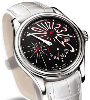 Главный конструктор компании Manfred Brassler напоминает в связи с этим, что "хронометраж начался с одной стрелки - солнечные часы, первые часы на соборах, старые часы Breguet. Для людей, в конце семнадцатого века, вторая стрелка показалась бы такой-же странной, как и единственная сейчас." Круглый корпус, диаметром 43 мм, из нержавеющей стали с черым PVD-покрытием. На черном циферблате - единственная центральная бронзовая стрелка и, соответственно, бронзового цвета арабские цифры и индексы (всего их 144, с ценой деления пять минут). Модель оснащена автоматическим механизмом ETA 2824-2. Ремешок черный кожаный. Цена составляет $ 1900 (1450 евро). Источник: http://blog.perpetuelle.com/index.ph...le-hand-watch/ |
