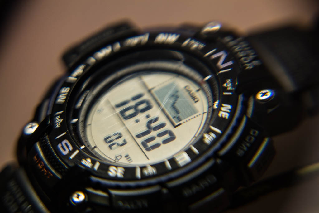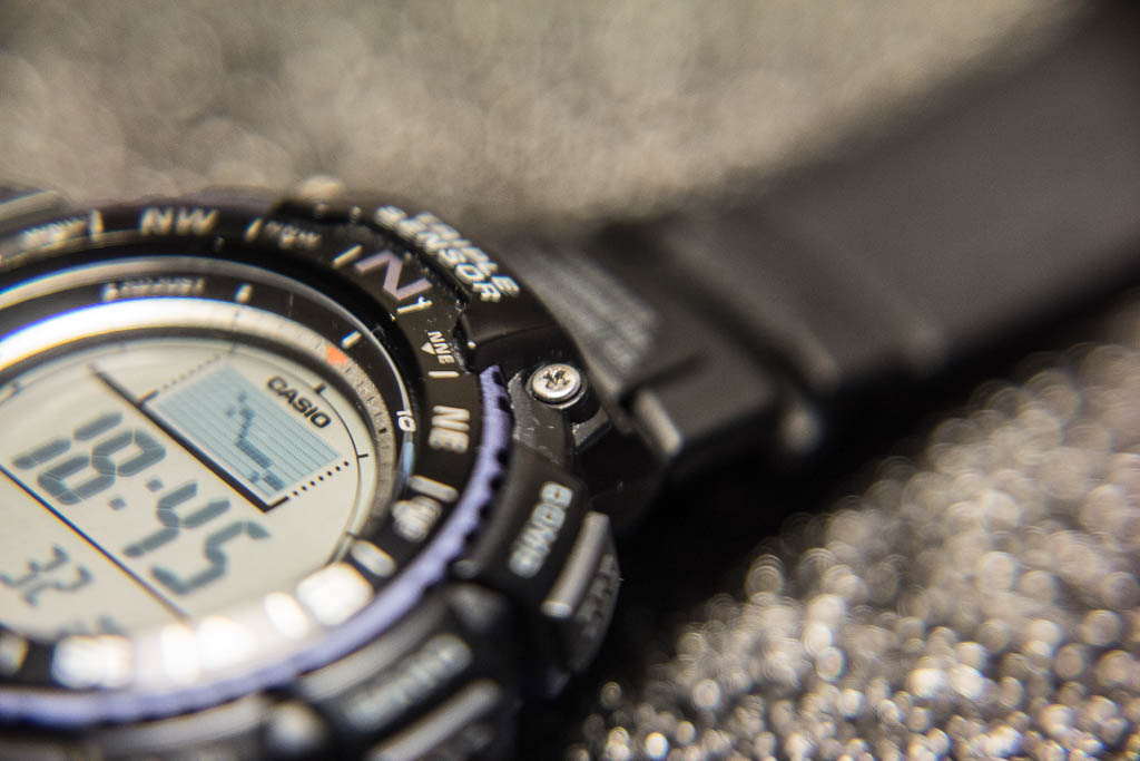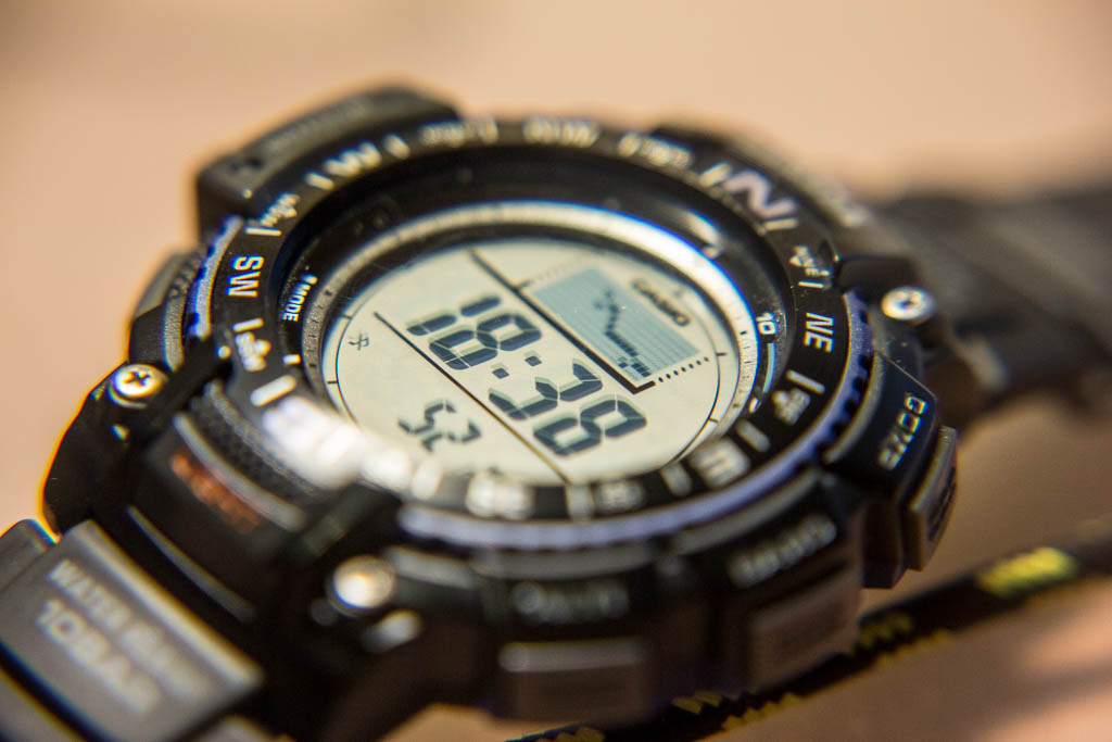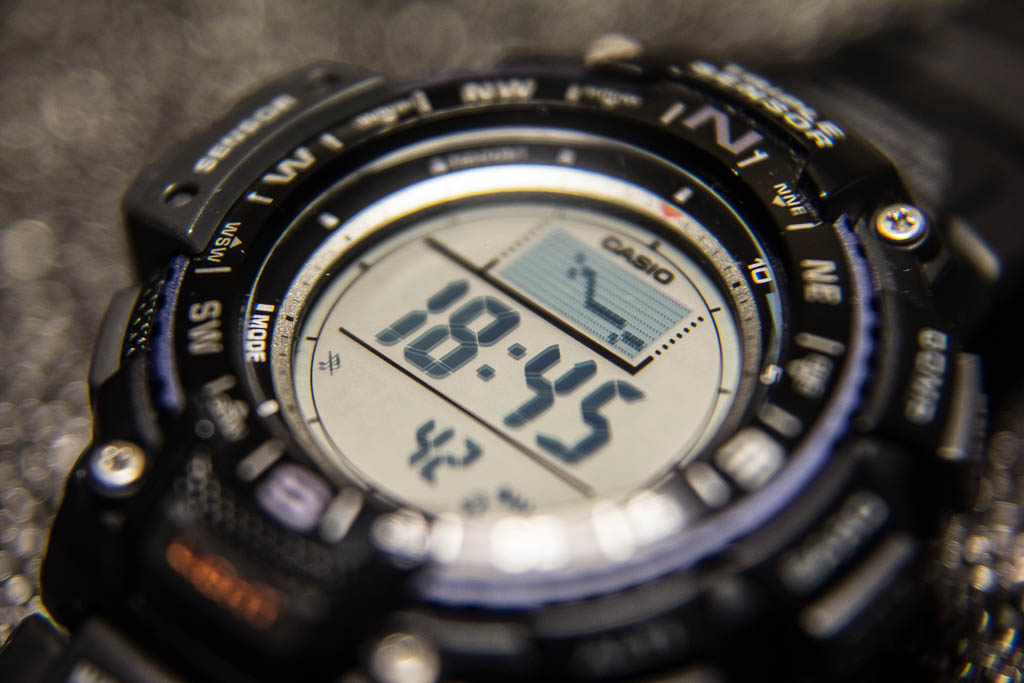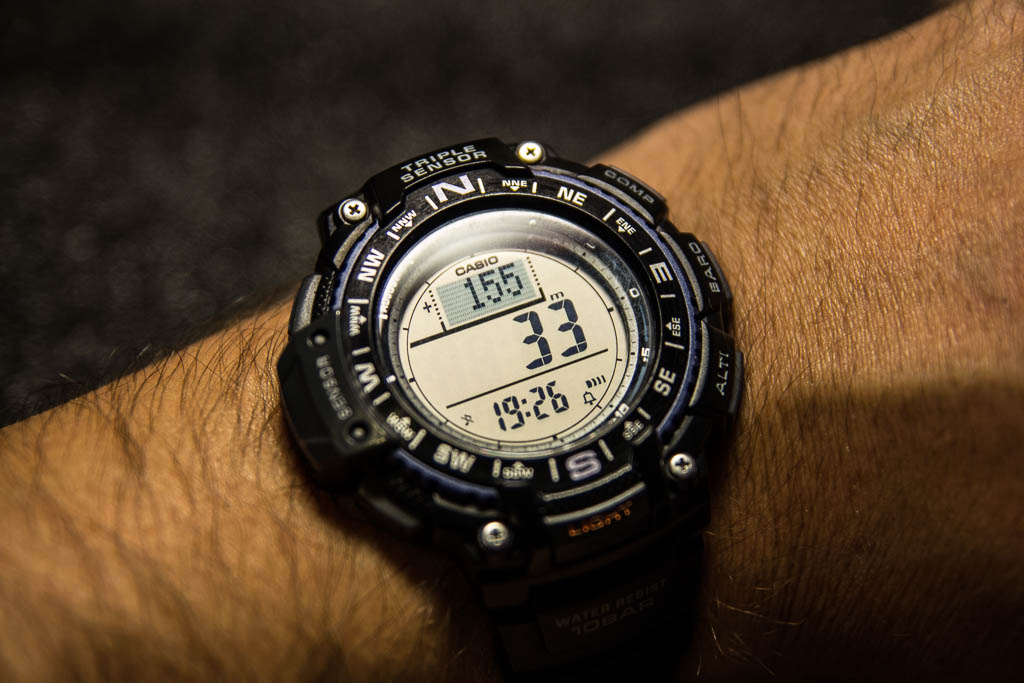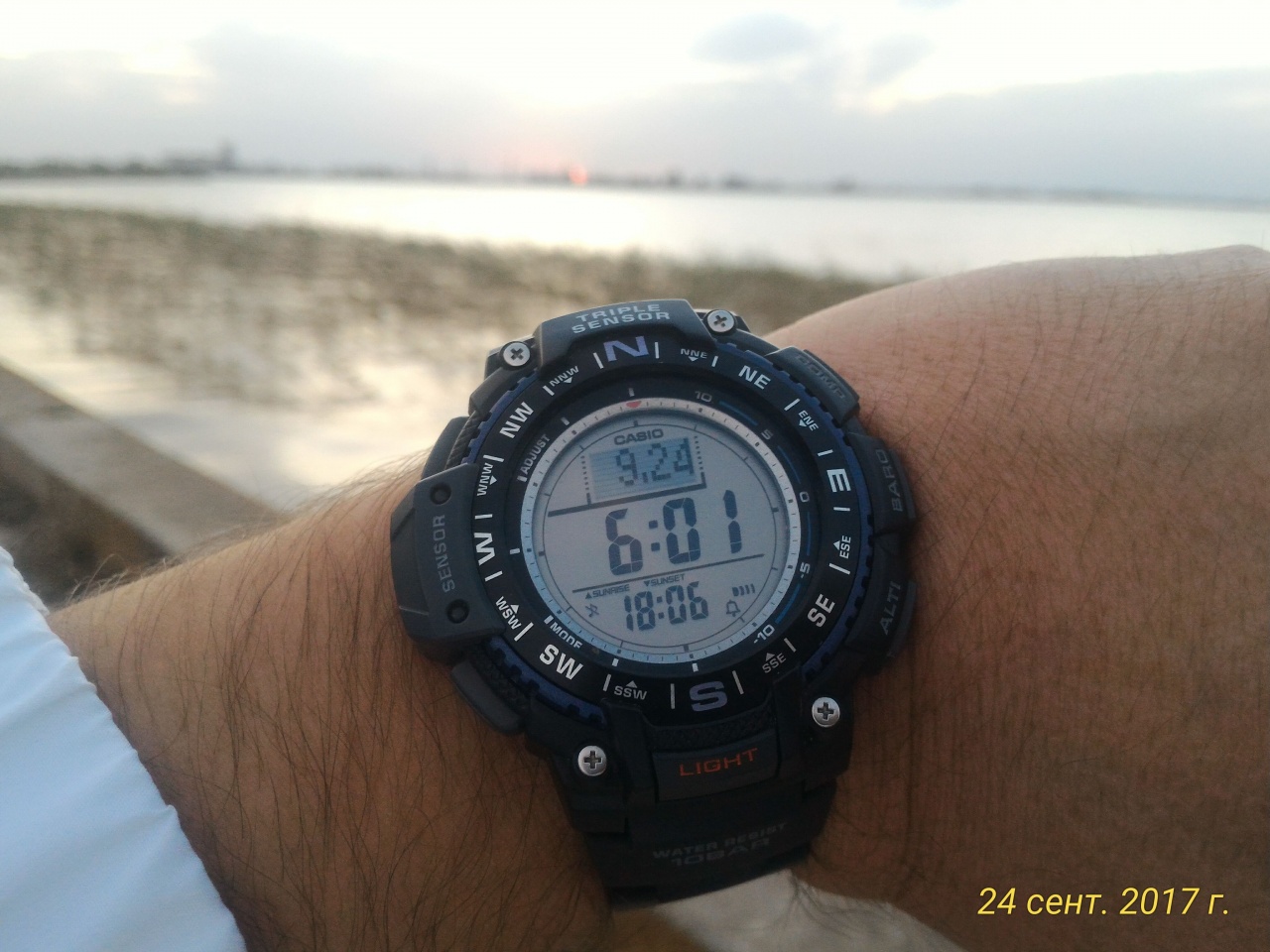 Выбор остановил на марке Casio. Хотелось кварцевые, без стрелок, большая легко читаемая индикация времени, водозащита 10-20атм, ну и конечно желательно фишечки ввиде барометра, компаса и т.п. G-shock'и с такими фишечками дороги, Protrack'и тоже, а вот Outgear самый раз. SGW-450, SGW-500, SGW-600 имеют разные датчики, но нет графика изменения давления, стекло пластиковое, да и со стрелками. Я так понял для себя, что функция барометра без графика немного бесполезна. SGW-100 вроде самое то: цена хороша, есть компас и датчик температуры, минеральное стекло, водозащита 20 атм, размер хороший 51.5x47.6x13.2мм. Но нет, блин, барометра и время подсветки 1,5 сек не меняется. SGW-1000 остановил на них выбор: есть тройной датчик последней версии, водозащита 10атм, суперская диодная подсветка до 3-х сек. Но уже претендуют по размерам на шайбу 54.1x54.7x15.3мм и пластиковое стекло. В местных магазинах таких моделей почему то не было, но в одном из них, встретившись с владельцем и разговорившись, меня убедили, что пластиковое стекло это совсем не страшно, даже наоборот, его можно полировать при необходимости. К тому же стекло утоплено под защиту безелем. Решил для себя пощупать в реале две этих модели и уже на месте принять окончательное решение. Начал штудировать цены в инете. Поиск привел на один из сайтов, где модель sgw-1000-1A стоит 6300р, а sgw-100-1V 4190р. Живу я в 250км от Ростова-на-Дону, поэтому проштудировал и оффлайн магазины на предмет наличия этих часов в этом городе; при случае съезжу пощупаю. На одном из сайтов заинтересовала популярная нынче надпись: "Нашли дешевле, позвоните нам". Обе модели этих часов были у них в наличие в одном месте по цене 12390р и 6890р соответственно. Позвонил, и они прогнулись в цене от первоначального варианта + 400р за доставку с инет магазина. Поехал, модели sgw-100-1v в наличие не оказалось, показали мне журнал, где "позавчера" продали эту модель. Примерил sgw-1000-1a и на удивление они удобно легли на руку, за счет малого веса вообще незаметны на руке. Ради интереса примерил там же prw-3000, они хуже легли на руку, может из-за более жесткого ремня. Купил sgw-1000-1v. Теперь слежу за временем и давлением ;-) Вложение 1953363Вложение 1953357Вложение 1953346Вложение 1953347Вложение 1953348Вложение 1953354 Теперь впечатления после трех недель. Все нравится. Ввел поправки на компас, ввел координаты для определения восхода/захода, с rp5.ru совпадает до +-2мин. Вложение 1953369Вложение 1953370 Внешний вид на высоте, нет ничего лишнего. Контрастность дисплея лучше, чем на многих похожих моделях, может даже лучшая. Под прямым углом и 45 градусов видно одинаково хорошо. Под более острым уже начинают проявляться неактивные секторы экрана. Причем с разных сторон по разному. Если смотреть на экран со стороны 5 часов, то показания видно под любым углом, вплоть до закрытия экрана безелем. Со стороны же 7 часов, уже под углом более 45 градусов ничего не разобрать. Вложение 1953364Вложение 1953365Вложение 1953372Вложение 1953339 Безель металлический, похоже на аллюминий. Чиркал по стене отштукатуренной, черенком лопаты досталось, пока никаких следов нет. Ремешок довольно мягкий, хорошо гнется. Фиксатор/застежка сделана из черного пластика, на вид прочного. Поживем посмотрим. Вложение 1953355Вложение 1953356 Датчики радуют, компас обновляет значения приблизительно пару раз в секунду. Может запомнить направление и показывать отклонение уже относительно него. Барометр не врет, с