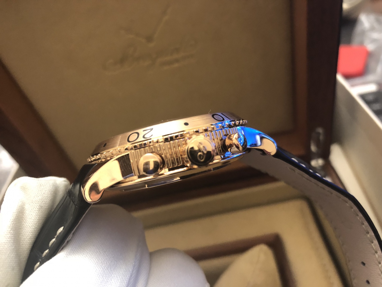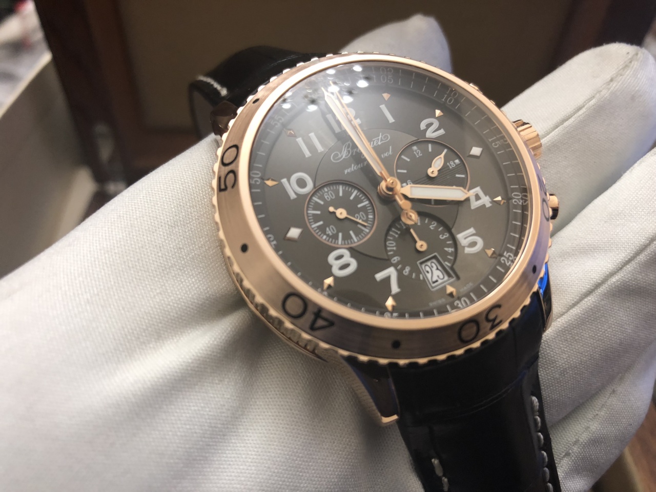 Пол: мужские Год покупки: не указано БУ часы, состояние: AAA (идеальное) http://forum.watch.ru/images/market-question.png Полировка: не указано Цена: 11 200 USD (продажа) Коробка: есть Документы: есть Тип: Часы мужские Материал корпуса: Розовое золото Размер корпуса: 42.50 мм Толщина корпуса: 15.40 мм Форма корпуса: Круглые Стекло: Сапфир Тип калибра: Механика с автоподзаводом Калибр: Breguet Calibre 584 Q Запас хода: 48 час Функции: часы, минуты, секунды, хронограф Flyback, дата, суточный календарь Браслет: Ремешок из кожи крокодила Цвет ремешка: Коричневый Застёжка: раскладная Водонепроницаемость: 100 м. Цена, рекомендуемая производителем: 20900 USD Ссылка на подобные часы: https://www.breguet.com/ru/Часы/...xii/3810#!2074 В 2004 году исполнялось 50 лет со дня того самого решения французского правительства, сделавшего Type XX легендой. Естественно мануфактура Breguet не могла пройти мимо такого события и отметила его новым хронографом Type XXI 3810. Подчиняясь общей тенденции, корпус хронографа вырос до 42 мм, а внешний вид модели стал куда более элегантным. Классический минутный счетчик у отметки «3 часа» заменил 24-часовой индикатор, а пройденные минуты хронограф отсчитывал с помощью дополнительной центральной стрелки. Но наиболее радикальные изменения в конструкции модели в Breguet приберегли до нынешнего года - круглой даты со дня появления на свет первых Type XX. Хронограф Type XXI c функцией мгновенного возврата(fly-back) из 18-каратного розового золота с центральной минутной стрелкой. Автоматический механизм с указателем даты и малой секундной стрелкой хронографа. Указатель дня и ночи и 12-часовой счетчик. Градуированный вращающийся безель. Люминесцентные стрелки и часовые метки. Завинчивающаяся заводная головка. Водонепроницаемость до 100 м. Вложение 1978702 Вложение 1978703 Вложение 1978704 Вложение 1978705 Вложение 1978706 Вложение 1978707 Вложение 1978708 Вложение 1978709 |