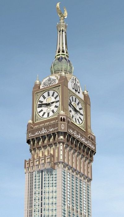Часы, превосходящие лондонский Биг-Бен, были изготовлены в Германии. Они размещаются на возводимом возле главной мекканской мечети Аль-Харам аль-Мекки аш-Шариф самом высоком в Саудовской Аравии здании, которое называется Королевская башня мекканских часов. Сама башня, которую завершат через три месяца, будет возвышаться на 601 метр и станет вторым самым высоким заселенным зданием в мире после дубайской башни Бурдж Халифа, высота которой составляет 828 метров. Отметим, что время на мекканских часах станет эталонным для мусульманской общины мира и будет сверяться с хронологическими данными Лондона, Парижа, Нью-Йорка и Токио. "Поскольку они (часы) находятся вблизи священной мечети, весь исламский мир будет сверять часы по ним, а не по Гринвичу. Мекканские часы станут символом для всех мусульман", - сказал житель Саудовской Аравии Хащим Аднан, часто бывающий в Мекке. Вложение 60959Вложение 60960 Источник: http://donbass.ua/news/world/2010/08...hasy-foto.html |