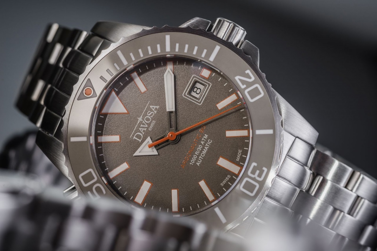 Круглый корпус новинки изготовлен из нержавеющей стали, диаметром 42,5 мм, толщиной 13,5 мм, водонепроницаемый до 300 метров. Вращающийся однонаправленный дайверский безель с керамическим покрытием черного, синего или серого цвета. Гелиевый клапан ручной, завинчивающийся, расположенный на 10 часах. На торце защищенной завинчивающейся рифленой заводной головки, размещенной на 3 часах, выгравировано изображение эмблемы бренда DAVOSA. Задняя крышка часового корпуса глухая, завинчивающаяся. Сапфировое стекло с антибликовым покрытием защищает циферблат с накладными продолговатыми часовыми индексами, покрытыми, как и часовая и минутная стрелки, а также разметка на безеле, люминесцентным составом Super-LumiNova BG W9 белого цвета, с голубым свечением во тьме. Модель оснащена швейцарским автоматическим механизмом Sellita SW200, с функциями индикации часов, минут, секунд (посредством соответствующих центральных стрелок) и даты (посредством соответствующего цифрового указателя в прямоугольной апертуре, расположенной на 3 часах).