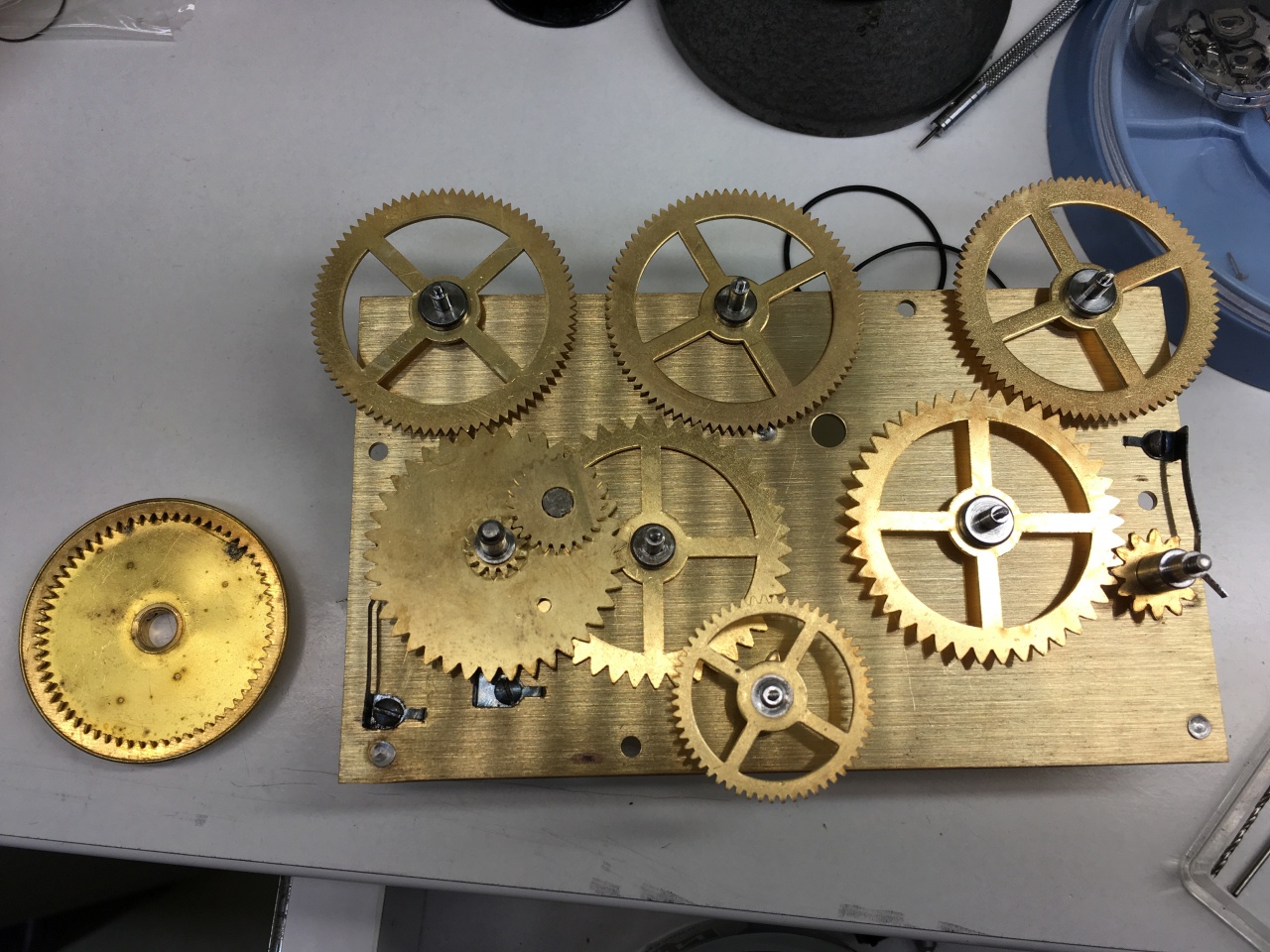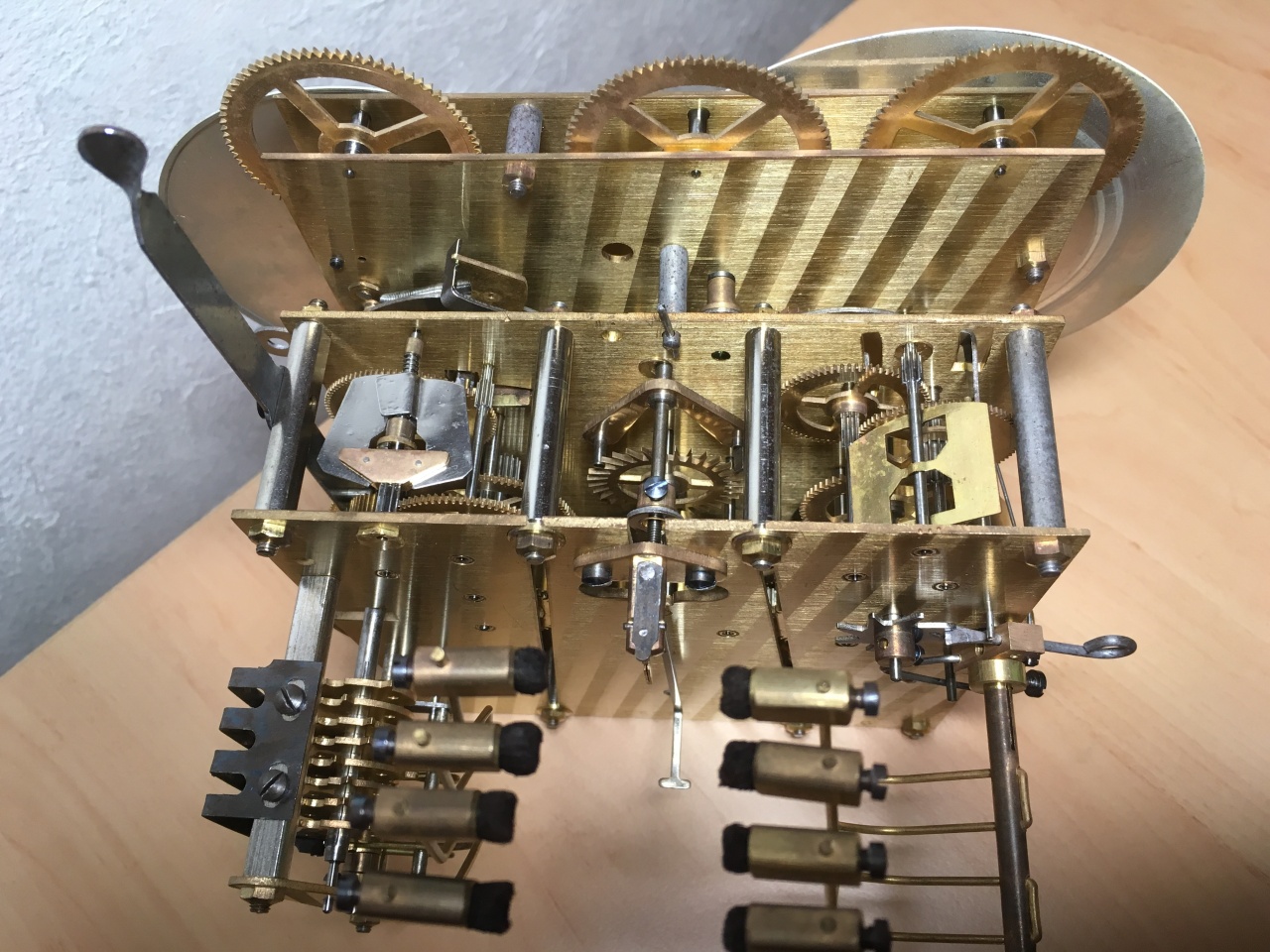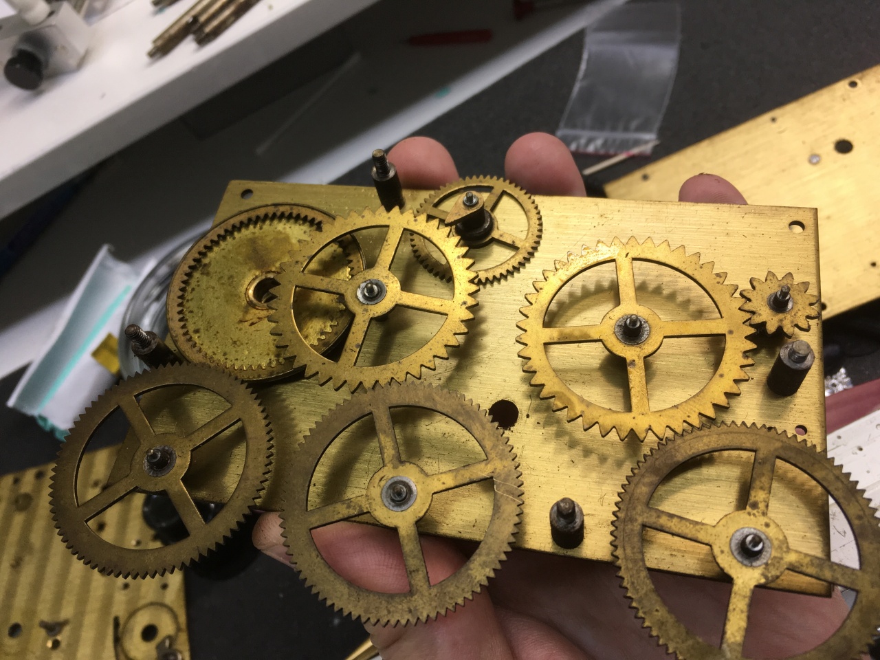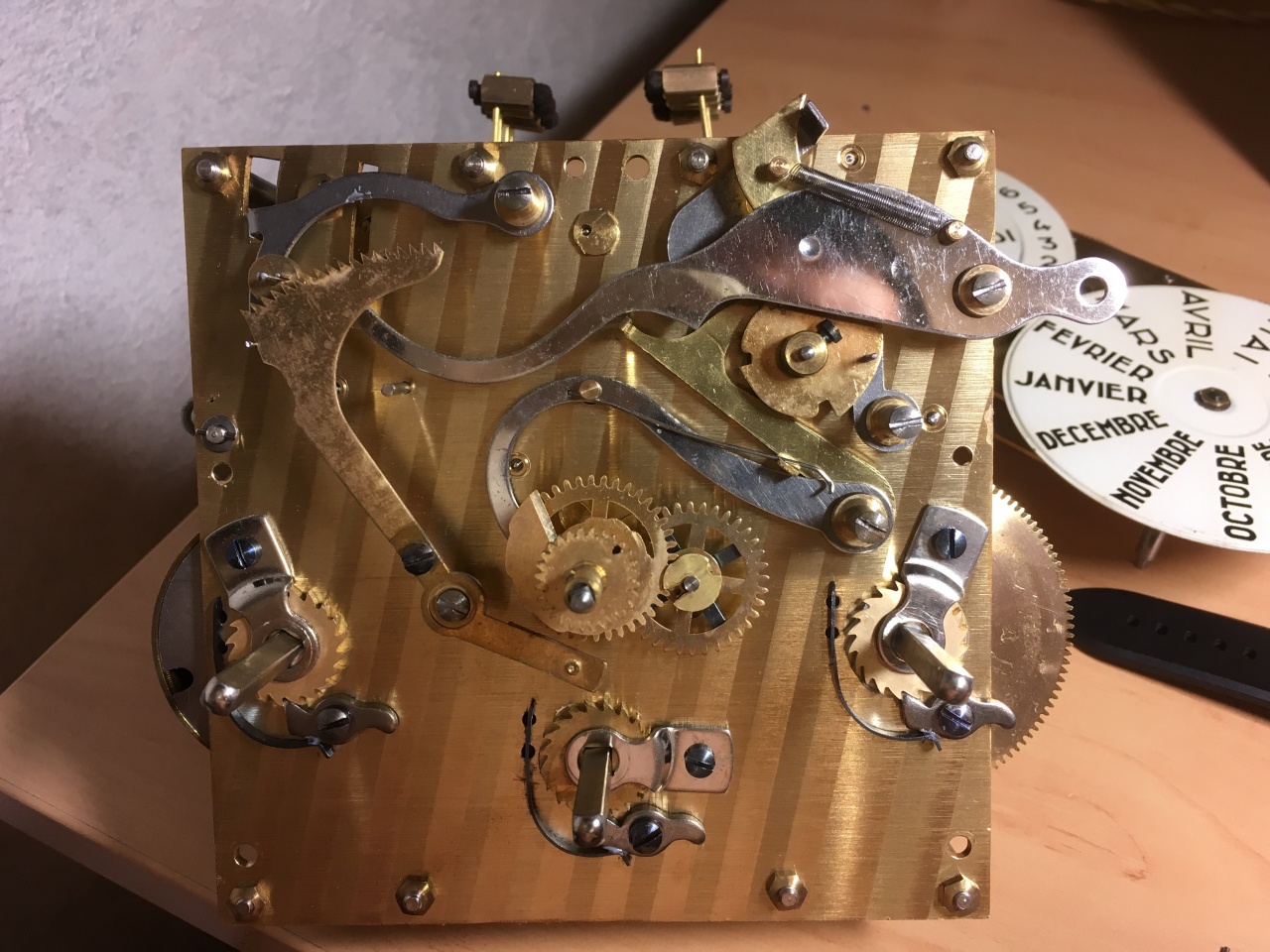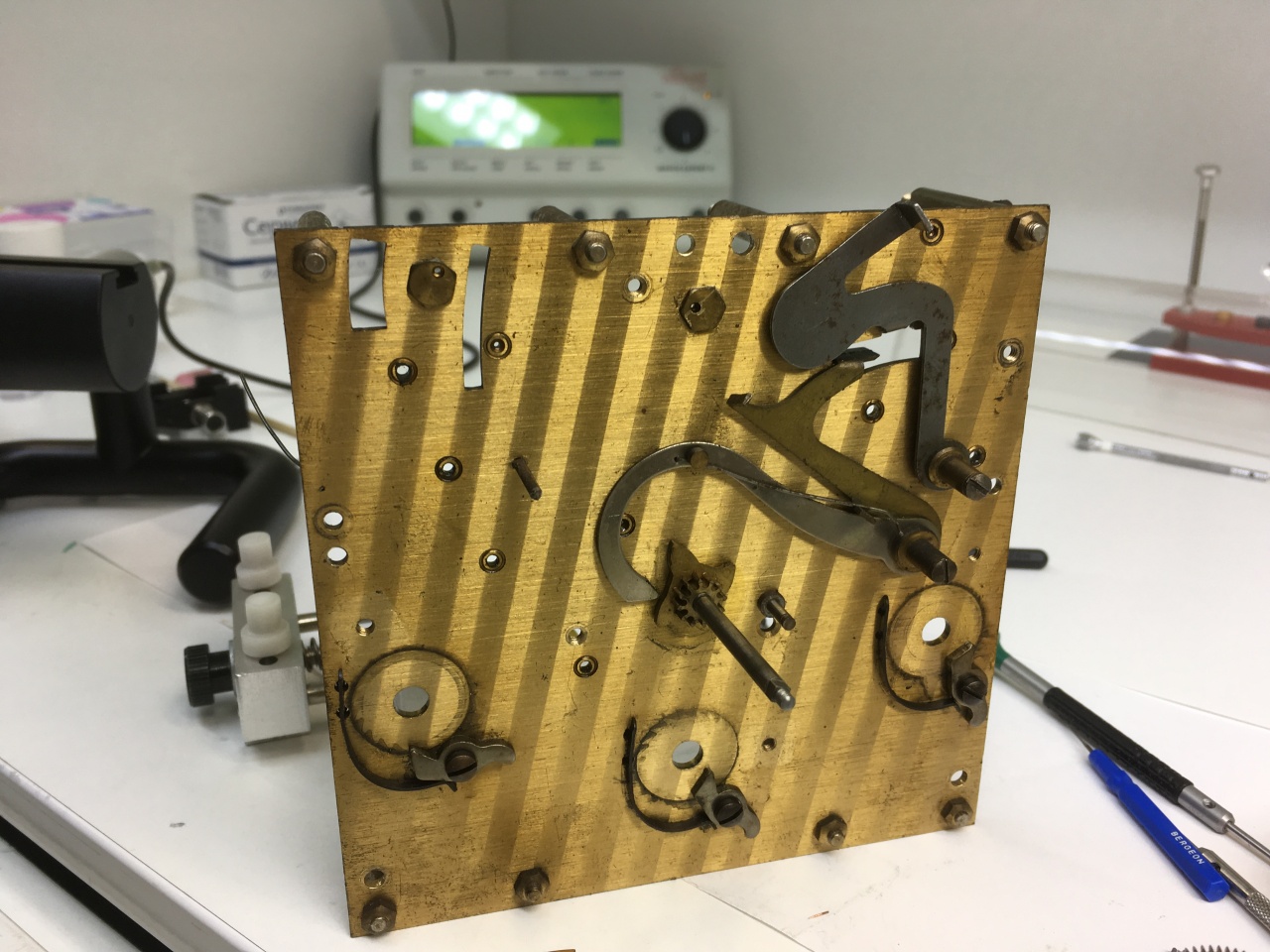 французская марка Girod из Морбье (Morbier), приблизительно 50-60-е годы [media]https://www.youtube.com/watch?v=l1WTkwu5-fc[/media] Вложение 2005195 Вложение 2005196 Вложение 2005197 Вложение 2005198 кстати, многие думают что название часов "Irod":) часы имеют переключение между двумя мелодиями и календарь мелодии Westminster и Cloches du Jura (колокола Юры́) дата и день недели переключаются автоматически, месяц только вручную для коррекции календаря сверху за циферблатом есть три колеса с треугольными зубьями верхнее (восьмиугольное) стекло сделано новое, с фацетом Вложение 2005203Вложение 2005204Вложение 2005205Вложение 2005206 ход Брокота, ветряк-бабочка на четвертях Вложение 2005207 немного фото "было-стало" Вложение 2005208Вложение 2005212 Вложение 2005209Вложение 2005213 Вложение 2005216Вложение 2005217 Вложение 2005239Вложение 2005240 часовое колесо имеет шпонку на оси, куда одевается часовая стрелка, а вексельное колесо имеет триб, фрикционно связанный с полотном это позволяет переводить часовую стрелку отдельно от минутной без рассинхронизации часового боя барабан хода имел выработку, для него я точил втулки окончательно внутренний диаметр проходил расточным резцом Вложение 2005236Вложение 2005237Вложение 2005238 механизм удобен в сборке благодаря составной задней платине, регулировку и синхронизацию элементов боя можно проводить не разъединяя платин Вложение 2005243 п.с. понятно, откуда у настенных четвертных ОЧЗ ноги растут... |