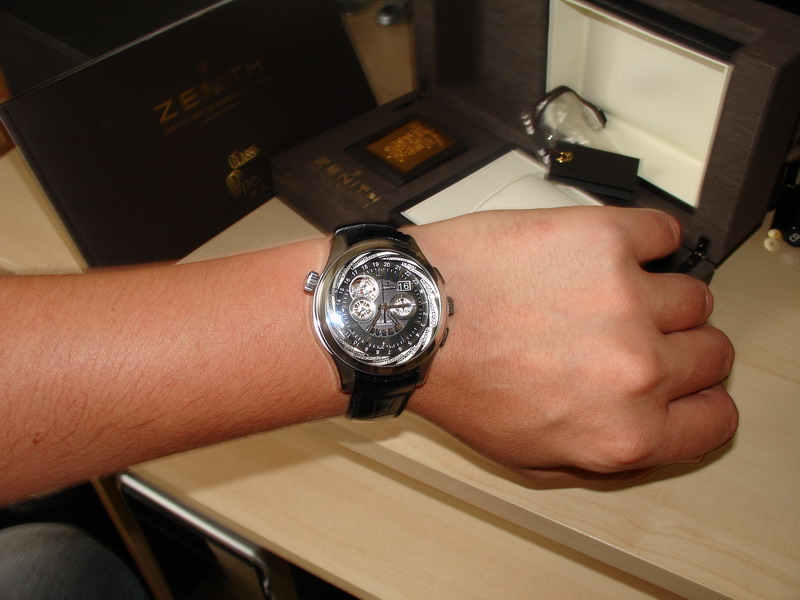 Наконец то добрались до меня часики. Полгода определялся после того как первый раз увидел их. Смотрел разных производителей, но уж больно они запали мне в душу . В конце июля душа не выдержала, а жаба лопнула… В итоге стал счастливым обладателем Zenith Grande Class Traveller Multicity 3.0520.4037-22.C660, за что ОГРОМНОЕ спасибо Дмитрию (LuxuryPoint) Вложение 61691 |