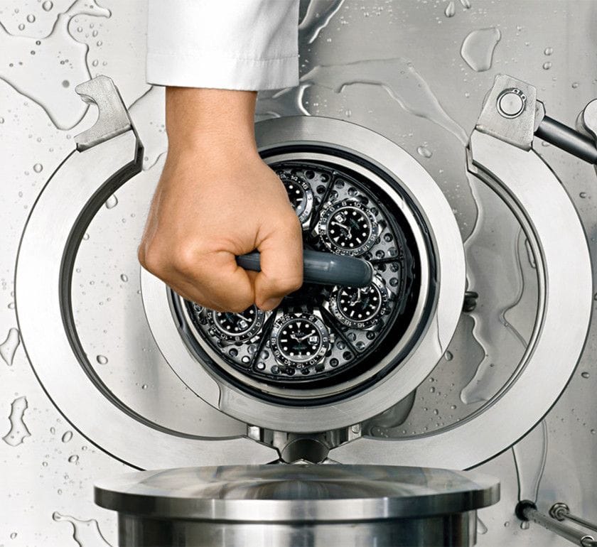 Каждый экземпляр часов Rolex, прежде чем покинуть завод, проходит довольно суровые тесты. А на стадии проектирования и изготовления компоненты часов этой швейцарской компании тестируют на критический износ и нагрузки. Например, застежки браслета Oysterlock, которые используются в профессиональных моделях Ролекс, проходят через 26 разных испытаний. Застежку погружают в бак, наполненный хлорированной соленой водой с песком, где она расстегивается и застегивается десятки тысяч раз, что примерно в три раза превышает нагрузку при использовании часов в реальных условиях.
