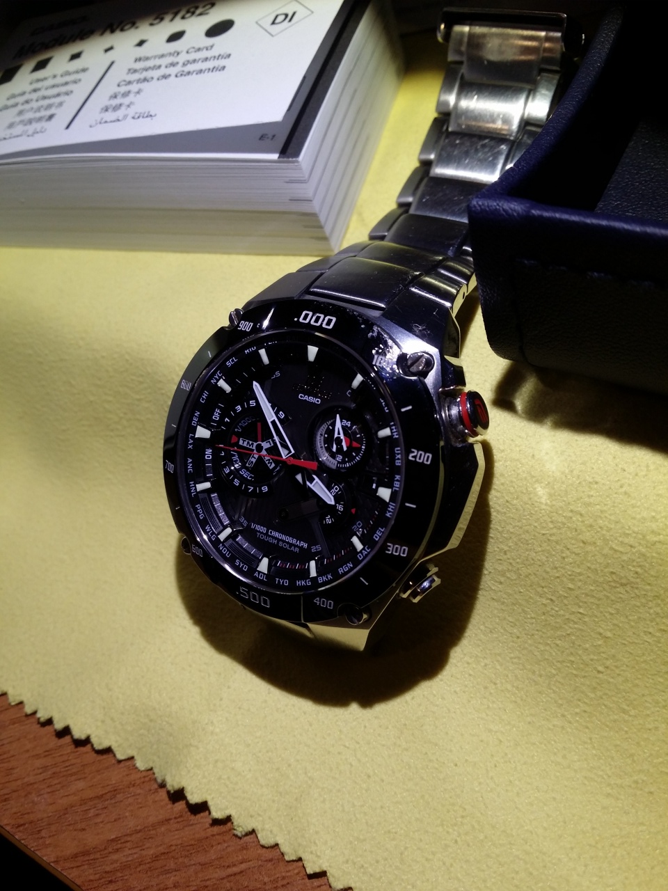 Пол: мужские Год покупки: 2015 БУ часы, состояние: A (хорошее) http://forum.watch.ru/images/market-question.png Полировка: нет Цена: 18 000 руб. (продажа) Коробка: есть Документы: есть Продам шикарные японские часы хронографы - топовые Casio серия Edifice, сапфировое стекло, солнечная подзарядка аккум. батареи, суперскоростной секундомер 1/1000, будильник, необритовая подсветка - светит всю ночь! Функция сохранения энергии, и т.д. Комплект полный, хорошее рабочее состояние, за исключением царапин (см. фото) Рассмотрю вариант обмена на топовый смартфон прошлых поколений в отличном состоянии Высылка в любой другой город за ваш счет Вложение 2058667 Вложение 2058668 |