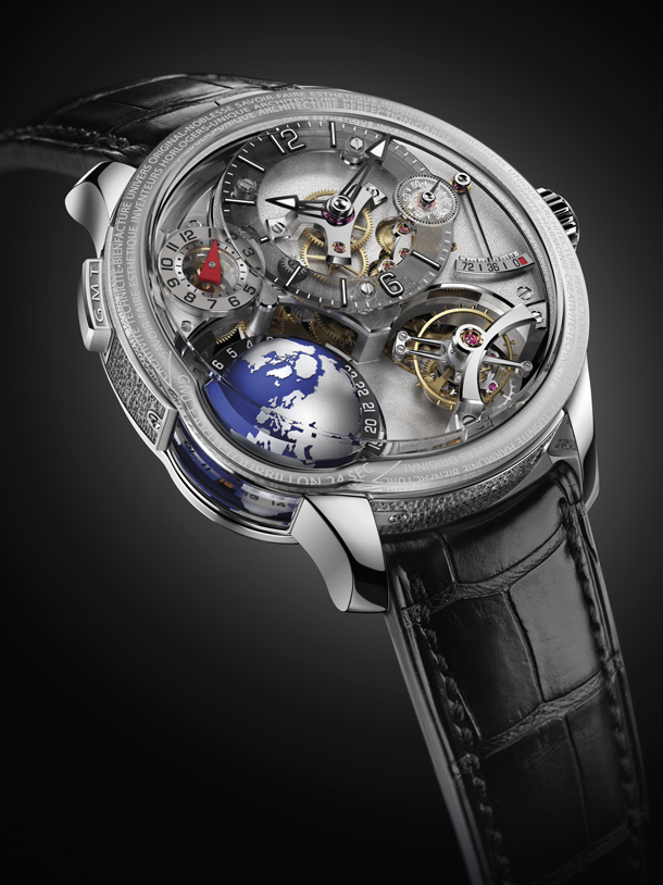 Создав часы GMT Earth, Робер Гребель (Robert Greubel) и Стивен Форси (Stephen Forsey) справились с чрезвычайно сложной задачей: они представили макет земного шара, полностью просматриваемый со стороны Северного и Южного полюсов. Переосмысленная конструкция механизма и корпуса этих часов позволила максимально эффектно представить миниатюру Земли.