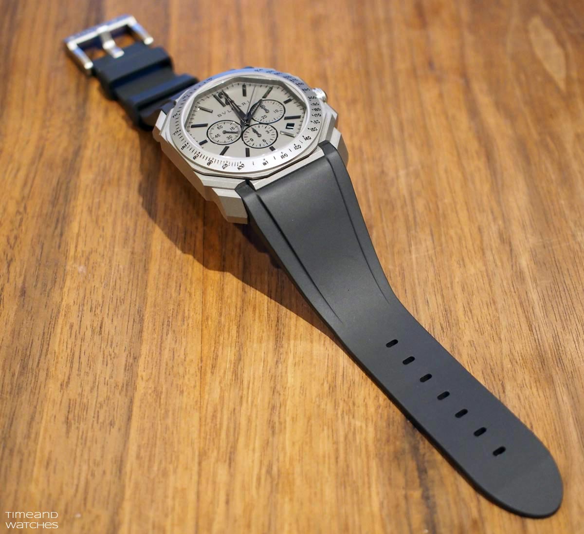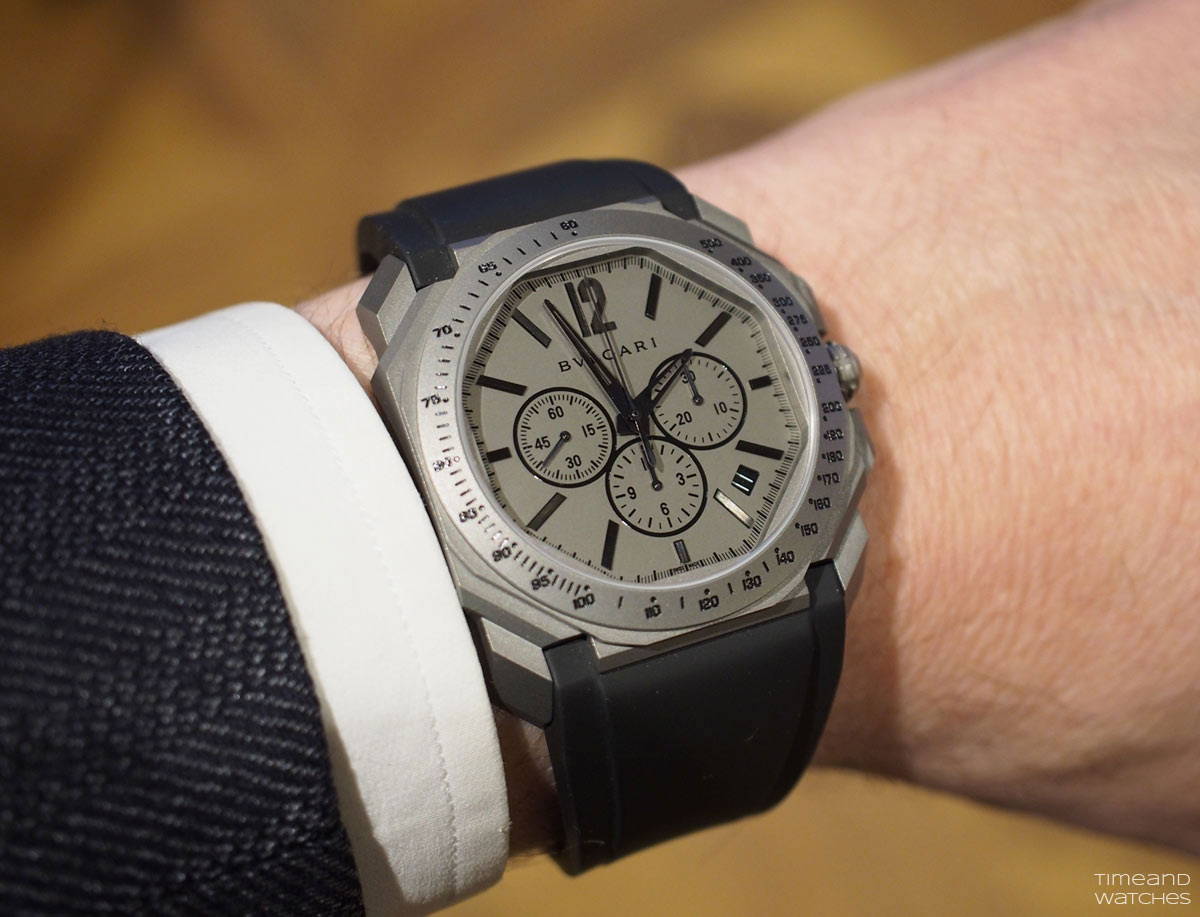 Модель оснащена швейцарским автоматическим механизмом Bvlgari Velocissimo BVL 328 (базовый калибр El Primero от Zenith), с балансовой частотой 36000 полуколебаний в час (5 гц), с фуекциями индикации часов, минут (посредством соответствующих центральных стрелок), секунд (на соответствующем малом боковом циферблате, расположенном на 9 часах), даты (посредством соответствующего цифрового указателя в апертуре, расположенной между 4 и 5 часами), а также с хронографом (центральная секундная стрелка, круглый аналоговый 30-минутный счетчик, расположенный на 3 часах и круглый аналоговый 12-часовый счетчик, расположенный на 6 часах). Поставляется на черном каучуковом ремешке с застежкой из нержавеющей стали. Цена модели Bvlgari Octo L’Originale Chronograph составляет 9950 евро. Вложение 2091911 Вложение 2091912 Вложение 2091913 Вложение 2091914 Источник: http://www.timeandwatches.com/2018/0...ronograph.html |