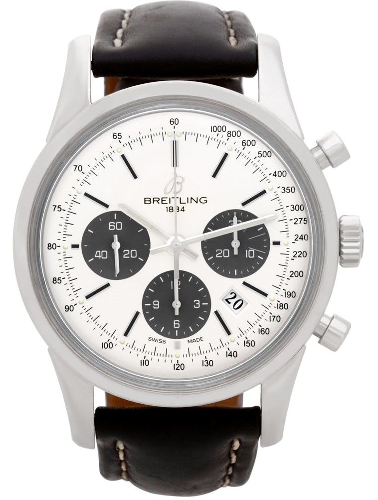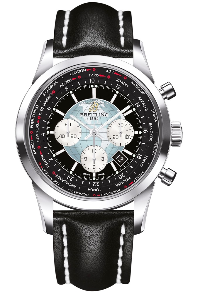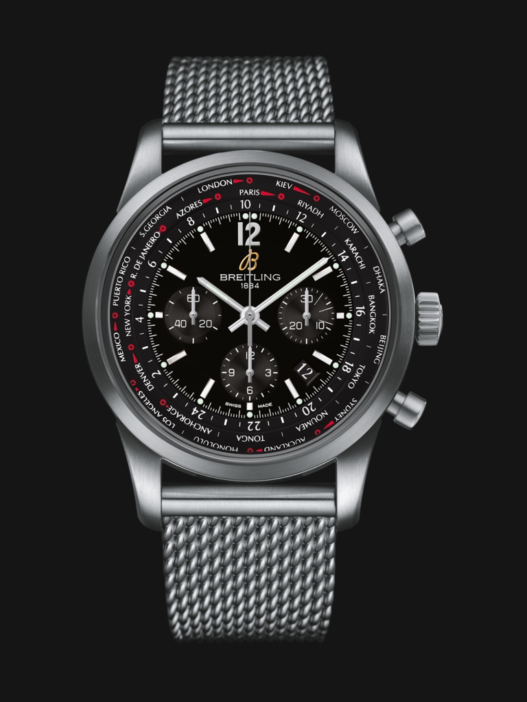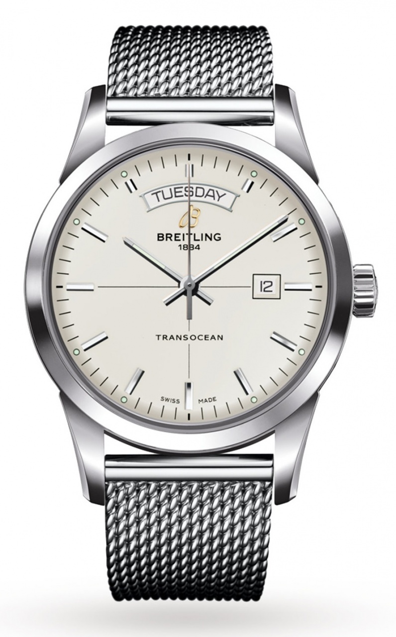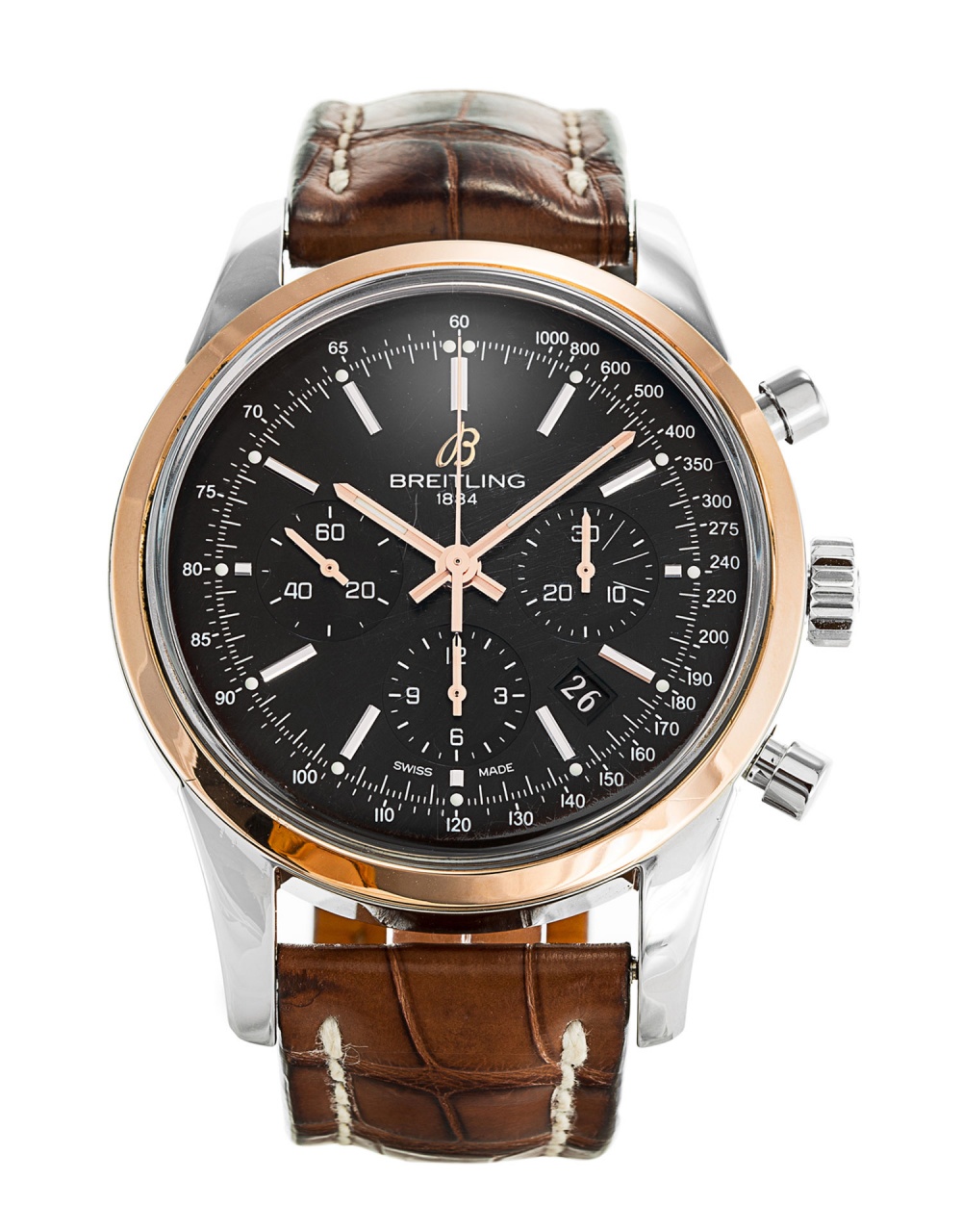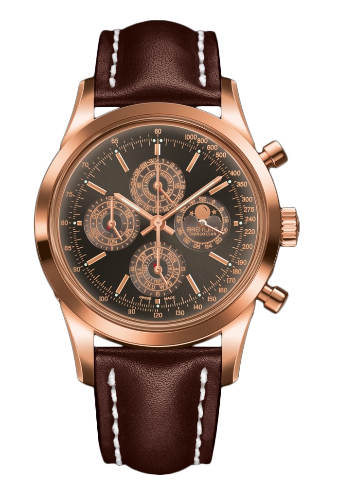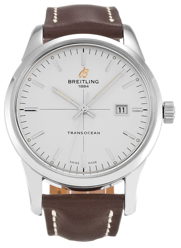 В модель установлен калибр B53 – ETA 251.262, WR 100м, безель с рейдерами, характерный для кольтов того периода. Диаметр корпуса - 41,5 мм. На ободке циферблата нанесена разметка компаса. Особенность данной модели - это закрашенная в синий и красный цвета шкала регаты на разметке от 10 до 12 часов (10 минутный отсчет). Таким образом модель привязали к яхтенному спорту. Сначала Transocean выходит с черным цифером и черными суб-циферами. Секундная стрелка хронографа имеет выраженную стрелу на конце, сам кончик окрашен в красный. Минутная стрелка хронографа окрашена в желтый цвет с менее выраженной стрелой на конце. Часовая и минутная стрелки выполнены в форме градусников. Часовые метки – нарисованные арабские цифры. Вложение 2103284 в 1997 году выходит вариант с белым цифером\синими колодцами, а в 1998 - с синим цифером\белыми колодцами. Секундная и минутная стрелки хронографа последних двух моделей изменены – минутная стрелка хронографа с менее выраженной стрелой, теперь имеет красный конец, вторая, секундная стрелка хронографа, ровная и не окрашена. Часовая и минутная стрелка имеют форму мечей (как и обычный кварцевый хронограф Colt). Часовые метки – накладные полоски. Вложение 2103285 Вложение 2103286 В 2001 Colt Chrono Transocean снимается с производства, и линейка снова закрывается. Спустя 10 лет, в 2011 году происходит возрождение Transocean, причем, в его классическом виде. Breitling выпускают сразу 2 модели Transocean, таким образом открыв новую линейку в современном каталоге компании. 1) Модель с тремя стрелками на калибре B10 (2892-A2). Модель вышла в корпусе размером 43 мм из стали или розового золота (реф A10360 и R10360 соответственно), с белым или черным циферблатом, на кожаном ремне или миланском браслете. WR 100м. Вложение 2103290 2) Хронограф на мануфактурном калибре B01 c прозрачной задней крышкой в корпусе диаметром 43 мм из стали и розового золота (AB0152 и RB0152). Сначала была представлена лимитированная версия из 2000 стальных и 200 золотых экземпляров с черным циферблатом, контрастными белыми счетчиками хронографа и золотым логотипом - буквой B, а затем сразу вышли три версии серийной модели – черный циферблат с черными счетчиками, белый циферблат с белыми счетчиками, белый циферблат с черными счетчиками. Логотип серийной стальной модели выполнен из белого золота, и из розового золота - у модели в золотом корпусе. Водозащита 100м. Вложение 2103291 Вложение 2103292 Вложение 2103293 Дизайн новых моделей явно намекает на классический Transocean 1958 года. Сами стрелки, окошко даты, часовые метки две перекрещенные линии на циферблате (у трехстрелочника), отсутствие массивного безеля с разметкой и рейдерами, как логотип в виде буквы B (который в те времена использовался Breitling для большинства переизданий винтажных моделей, таких как SuperOcean Heritage, Chrono-Matic, некоторые модели Montbrillant) указывают на связь новой линейки с 50-60-ми годами. В 2012 году линейка серьезно разрастается, выходят следующие модели с интересными усложнениями: - Transocean Chronograph Unitime в корпусе из стали и розового золота (реф AB0510 и RB0510) диаметром 46 мм, с белым и черным циферблатами, в центре которых расположена голубого цвета проекция западного полушария земли с материками белого цвета. На диске вокруг циферблата нанесены названия городов, соответствующих временным поясам. Модель примечательна тем, что в ней был установлен новый калибр B05 – собственная разработка Breitling: запатенто