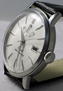 Orient SDT00002W - это точное воспроизведение модели, выпущенной компанией в 1950 году. Строгий, классический дизайн, безупречная графика циферблата, классическая механическая конструкция, лишенная любых излишеств. Название компании, размещенное в нижней части циферблата, написано шрифтом, который использовался при первом выпуске часов. Такая же надпись размещена на торце заводной головки часов. Также на циферблате размещена надпись 60th Anniversary Limited Edition, указывающая на принадлежность модели к юбилейной серии. На задней крышке помимо клейма «Made in Japan» размещена гравировка с названием серии и модели и отдельно выгравирован серийный номер экземпляра. В отличие от обычных серий, имеющих номер вида «123456» , номер здесь имеет вид «0000-1500», где 0000- это номер конкретного экземпляра, а 1500- общее количество выпущенных единиц.