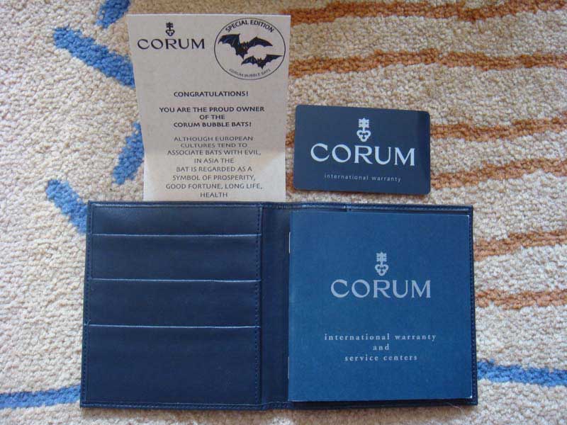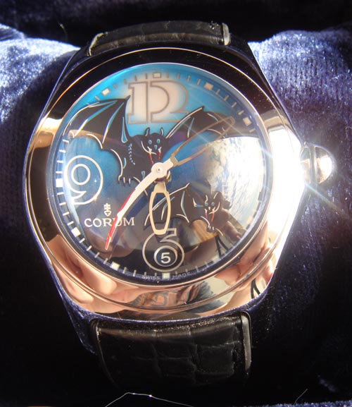 Продаю часы Corum Bubble Bat Limited, ref: 082 150 201 0F01. Часы куплены в октябре 2008 года. Полный комплект: коробка (с клыками :)), документы, карточка и даже салфетка с мышками. Международная гарантия. Одевал буквально пару раз, поэтому нет даже микроцарапин. Состояние часов - практически новые. Крутились в виндере Buben & Zorweg, естественно не полировались и не обслуживались. Материал: сталь; Размер: 45 мм (но хорошо сидят даже на женской руке - удивительно, но факт!); Оригинальный кожаный черный ремень, стальная двусторонняя клипса; Механизм автоматический, 2892-А2 (если не ошибаюсь), декорированный летучими мышками; Прозрачная сапфировая задняя крышка; Limited Edition 2005 (именно LE, а не SE, но они же кажется выпускались и Special Edition ... ) Цена: 80000 руб. Живые фотки выложу на днях, как доберусь до фотокамеры. Обмен не интересен, т.к. просто нужны деньги. Предложения пож. в личку. |