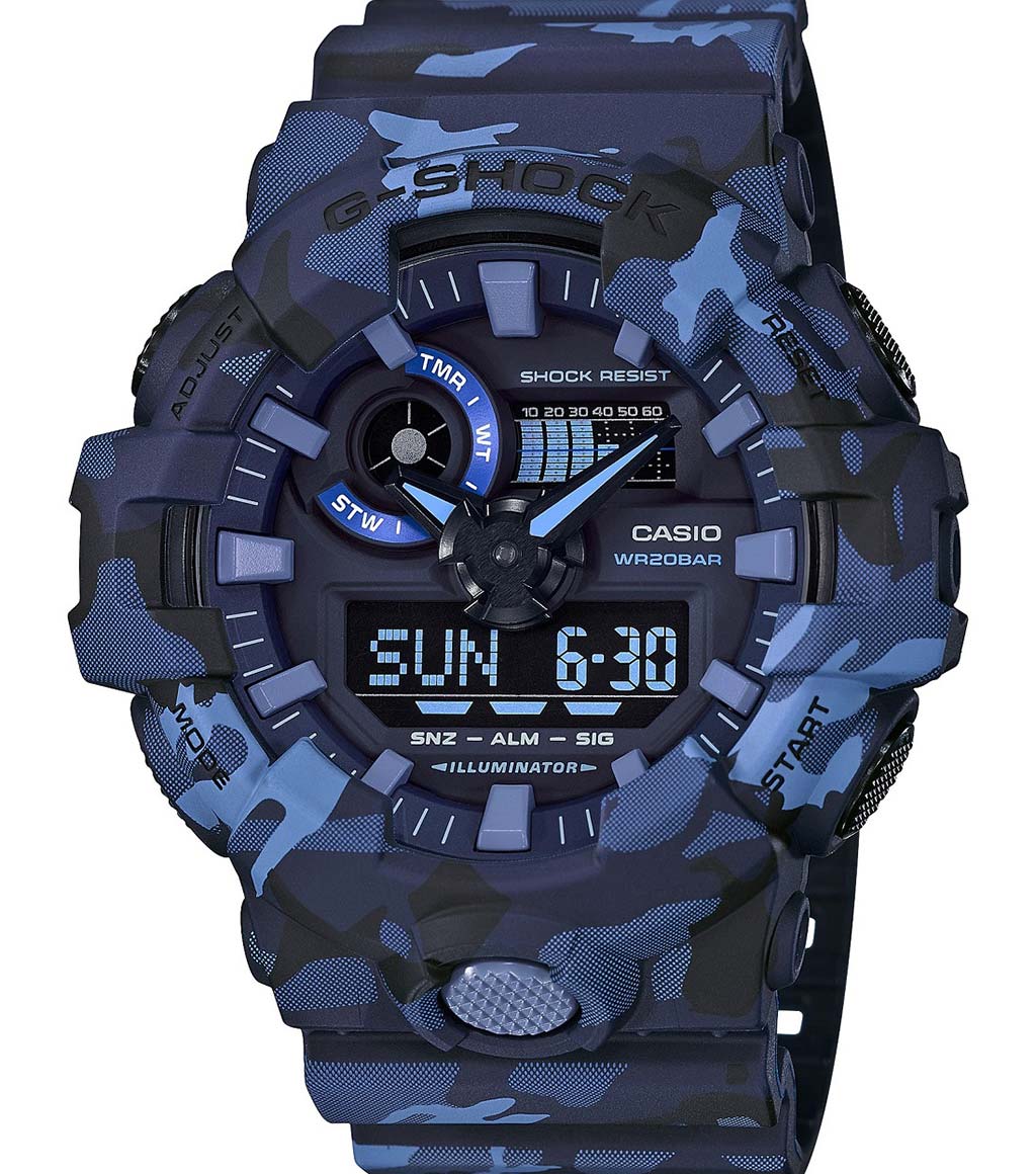 На выбор новые камуфляжные часы Casio G-Shock GA700 доступны в темно-синем, армейском зеленом и сером цвете рисунка. Коллекция GA700 всегда предлагала много по относительно доступной цене. В этот раз традиция сохраняется: цена новинок составляет $130.