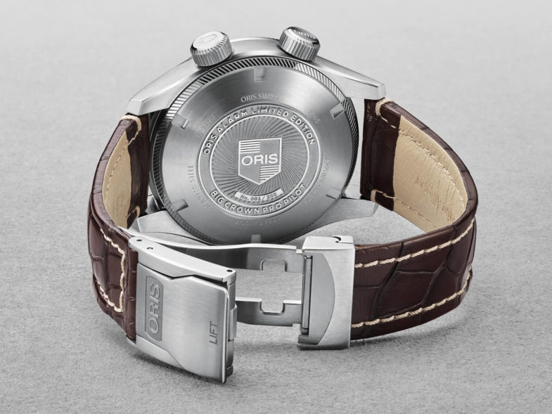 Вложение 2144652 В какой-то мере это привносит в часы определенный дух ретро, как будто от долгих лет службы сошло хромированное покрытие, я думаю, вы видели такие )) Кроме того, рамка безеля отлично сочетается с золотистыми накладными метками и стрелками, с Суперлюминовой бежевого цвета «под старину». С другой стороны, это несколько половинчатое решение, на чаяния часовых фанов получить более бюджетную, бронзовую, серийную модель. Ну и не все любят биколор. Вложение 2144654 Вкратце о характеристиках. Интересно, что данная модель предлагается в двух вариантах: с корпусом диаметром 40 мм (Ref. No. 01 733 7707 4354 LS), и для истинных любителей ретро или обладателей небольшого запястья, или дам – 36 мм (Ref. No. 01 733 7747 4354 LS). Стекло – выпуклый сапфир, водозащита составляет 100 метров. Вложение 2144655 Задняя крышка несет на себе гравировку со старым логотипом бренда. Внутри часов установлен механизм Oris Cal. 733, основанный на Sellita SW 200-1. Вложение 2144656 Доступно четыре варианта ремешков каждой версии часов: кожа, каучук, NATO и браслет. Предварительная цена составит: $2000 долларов (40 мм на ремешке) и $2200 (40 мм на браслете), 36 мм вариант соответственно $1975 (ремешок), $2175 (браслет). В продаже будут доступны с апреля. Теперь из глубин поднимемся в небо и перейдем к пилотским часам. Собственно самой продвинутой в техническом плане является Oris Big Crown ProPilot Calibre 114. Эти часы основаны на «домашнем» калибре с 10-дневным запасом хода, который похоже весьма гибок в плане модификаций дополнительными усложнениями. На сей раз, часы получили, вероятно, одну из наиболее полезных функций для авиаторов, а именно отображение времени в дополнительном часовом поясе (GMT). Вложение 2144657 Теперь на антрацитовом циферблате, кроме малой секундной стрелки, возле которой разместилось окошко даты и нелинейного указателя запаса хода на «3» часа, появилась дополнительная «GMT» стрелка и внешняя 24-часовая разметка. Вложение 2144659 Кроме этой особенности, часы в целом весьма похожи на стандартный Big Crown ProPilot. Часы имеют корпус диаметром 44 мм, и водозащиту 100 метров. Заводная головка крупного диаметра, название линейки обязывает. Внешний рант имеет наклонную боковую насечку. Вложение 2144660 Прозрачная задняя крышка, с такой же насечкой как и на безеле, демонстрирует механизм Calibre 114, с 10-дневным запасом хода. Вложение 2144661 Часы поставляются либо на ремешке, текстильном (черного, оливкового или серого цвета) или кожаном с фирменной клипсой, либо браслете. Как это ни странно, наиболее дорогая версия с кожаным ремешком, ее стоимость CHF 5800 швейцарских франков (примерно $6100 долларов). Часы на браслете оценены в CHF 5700 швейцарских франков ($5900), а на тканевом ремешке — CHF 5500 франков ($5800). Далее рассмотрим интересную лимитку из этой же линейки — Oris Big Crown ProPilot Alarm Limited Edition (Ref. 01 910 7745 4084-Set LS). Как вы уже могли понять, прочитав название, эти часы имеют будильник. Бренд уже выпускал часы, с данным усложнением еще начиная с сороковых годов прошлого века, и вот они решили подарить эту функцию и пилоту. На мой взгляд, довольно приятная и нужная фишка в повседневной жизни. Вложение 2144662 Форма 44 мм корпуса повторяет другие модели ProPilot серии, однако, со своими особенностями. Здесь мы видим две заводные головки, одна из которых управляет будильником. Большой плюс, что на ее торце есть гравировка, которая позволяет ее отличить от обычной заводной. Пользуясь в с