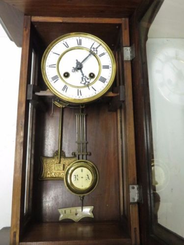 Пару лет назад прикупил для себя настенные часики с остатками гонга "Астор". (фото своих часов смогу выложить позже, правда руки до восстановления корпуса пока не дошли). В часах точно такой же механизм, как показывала Татьяна. И что примечательно, подвес маятника точно такой же. Я так подозреваю, что это механизм "HAU", правда без клейма, с изменённым подвесом маятника и изменённым рычагом боя (не торчащим из механизма), ну и естественно с гонгом "Астор", как мне кажется сделанные для какого-то торгового дома. В моих часх циферблат эмалевый типа "Le Roi...", диаметром 16,5 см. |