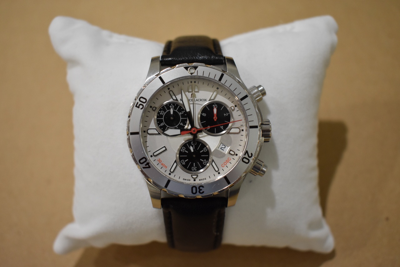 Пол: мужские Год покупки: 2008 БУ часы, состояние: A (хорошее) http://forum.watch.ru/images/market-question.png Полировка: нет Цена: 24 000 руб. (продажа) Коробка: нет Документы: есть Продам Maurice Lacroix Miros Chrono Diver Корпус: сталь Ремешок: не оригинальный, телячья кожа Размеры: 41 мм в диаметре, 48 мм по дужкам, 13.5 мм в толщину Механизм: высокоточный термокомпенсированный кварц (точность +/-15 сек в год), сертифицированный хронометр C.O.S.C. Функции: Часы, минуты, секунды, дата, хронограф Cтекло: сапфировое Dодостойкость: 300 метров, завинчивающаяся заводная головка и задняя крышка D комплекте: только инструкция, сервисная книжка. Возможен обмен, предложения в личку. Вложение 2152889Вложение 2152890 Вложение 2152891Вложение 2152892 Вложение 2152894Вложение 2152895 Вложение 2152896Вложение 2152897 Вложение 2152898Вложение 2152899 |