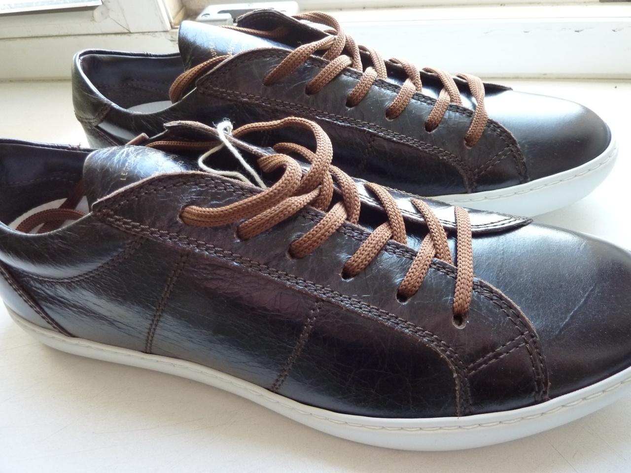 В продаже новые кожаные коричневые сникерсы известного спортивного обувного итальянского бренда "PANTOFOLA D'ORO".