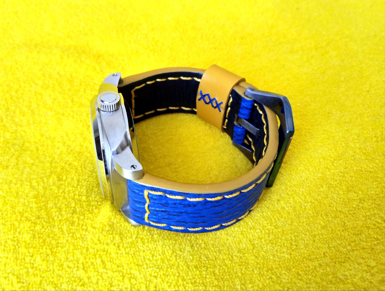 Не все сразу ;) Надеюсь, нас здесь больше, чем трое?))))))))))) Чтоб поменьше слов, а побольше фото: полированная кожа ската, пряжка из карбона на толстом стальном винте, элементы прострочки из черной нити, увязывающие между собой ремешок, пряжку и черный цифер часов. http://i6.pixs.ru/storage/8/9/9/2015...8_29957899.jpg |