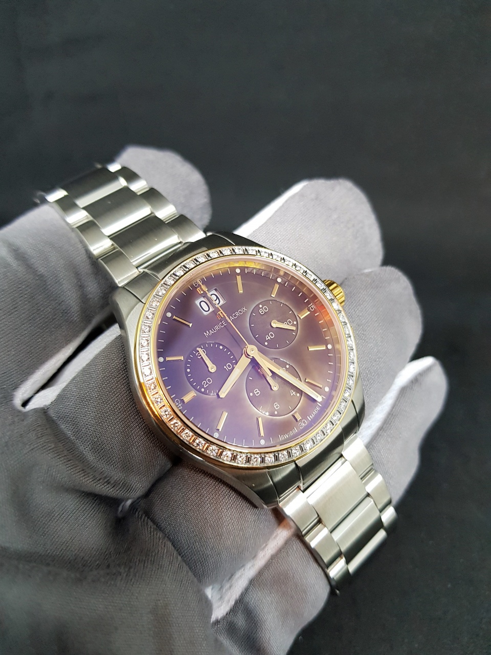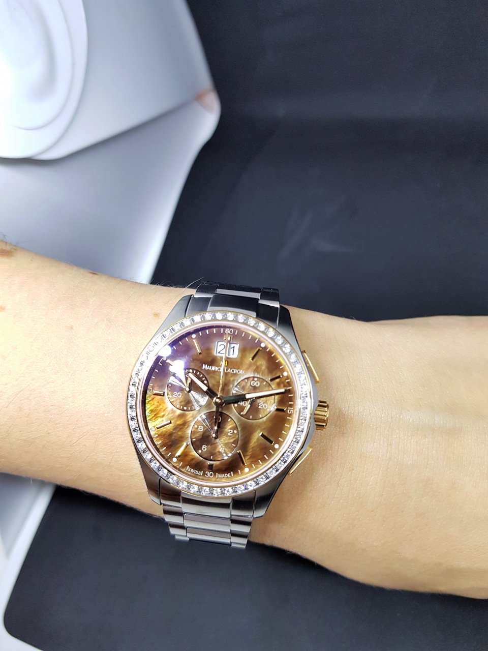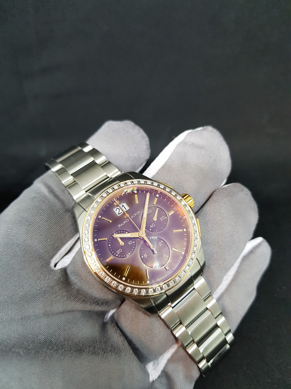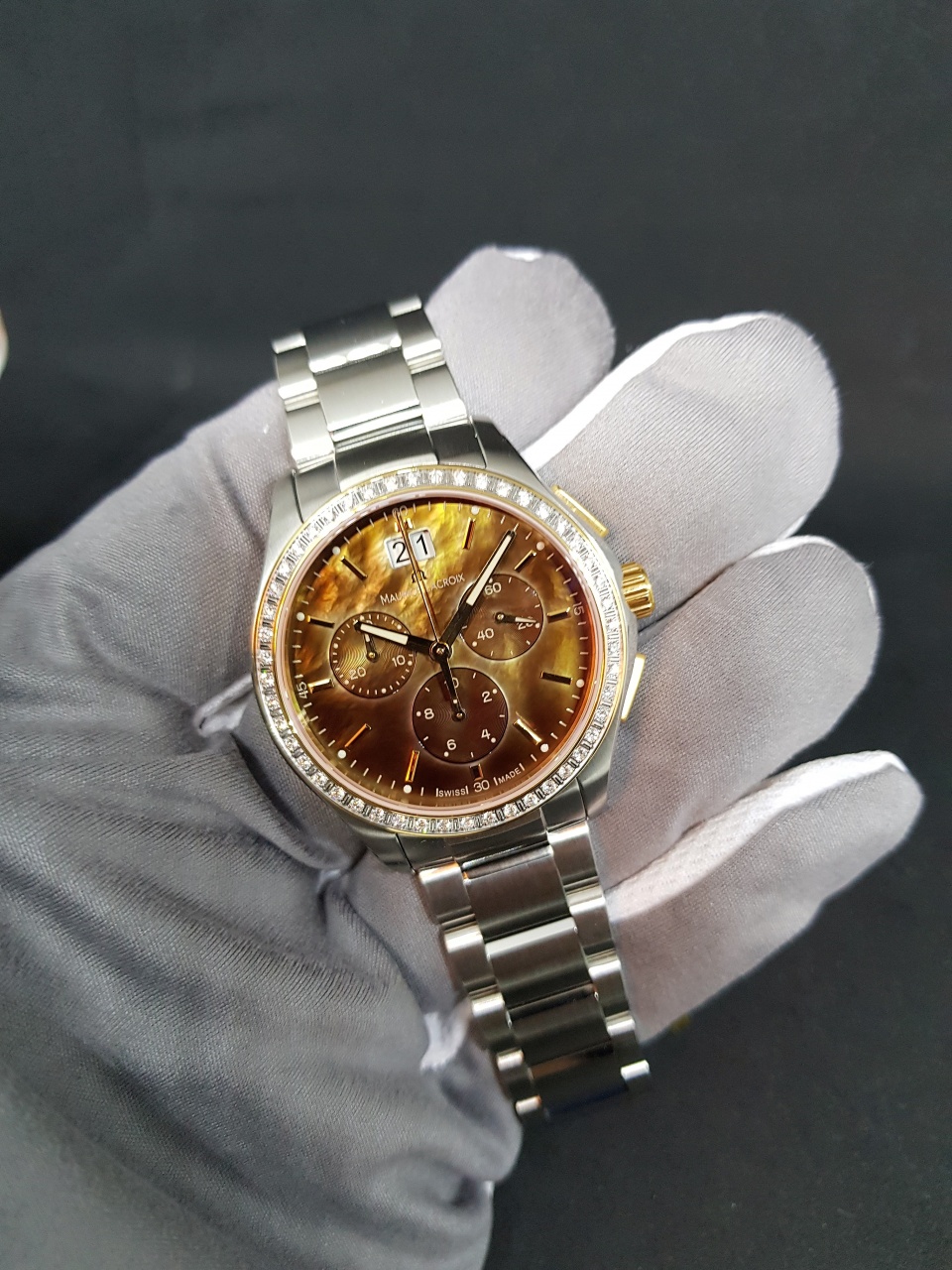 ЯРКИЕ ЖЕНСКИЕ MAURICE LACROIX Miros / Хронограф / Большая дата / Браслет / 48 брильянтов /38мм /100М
