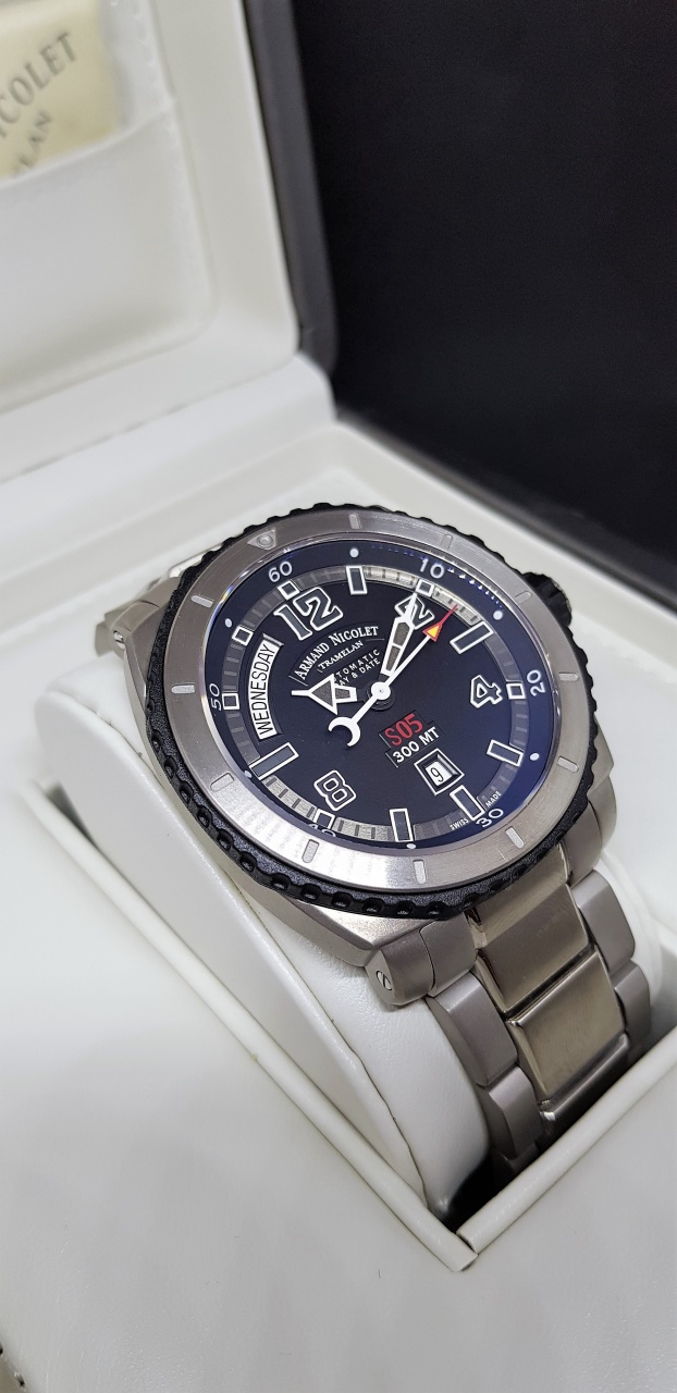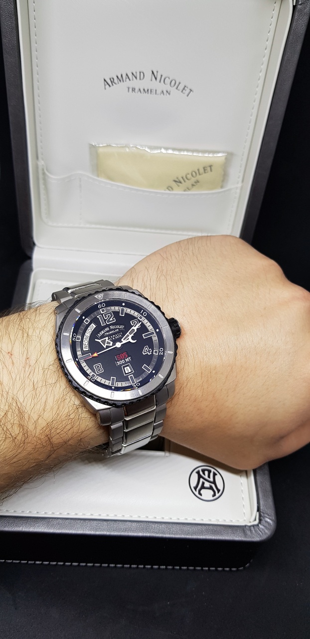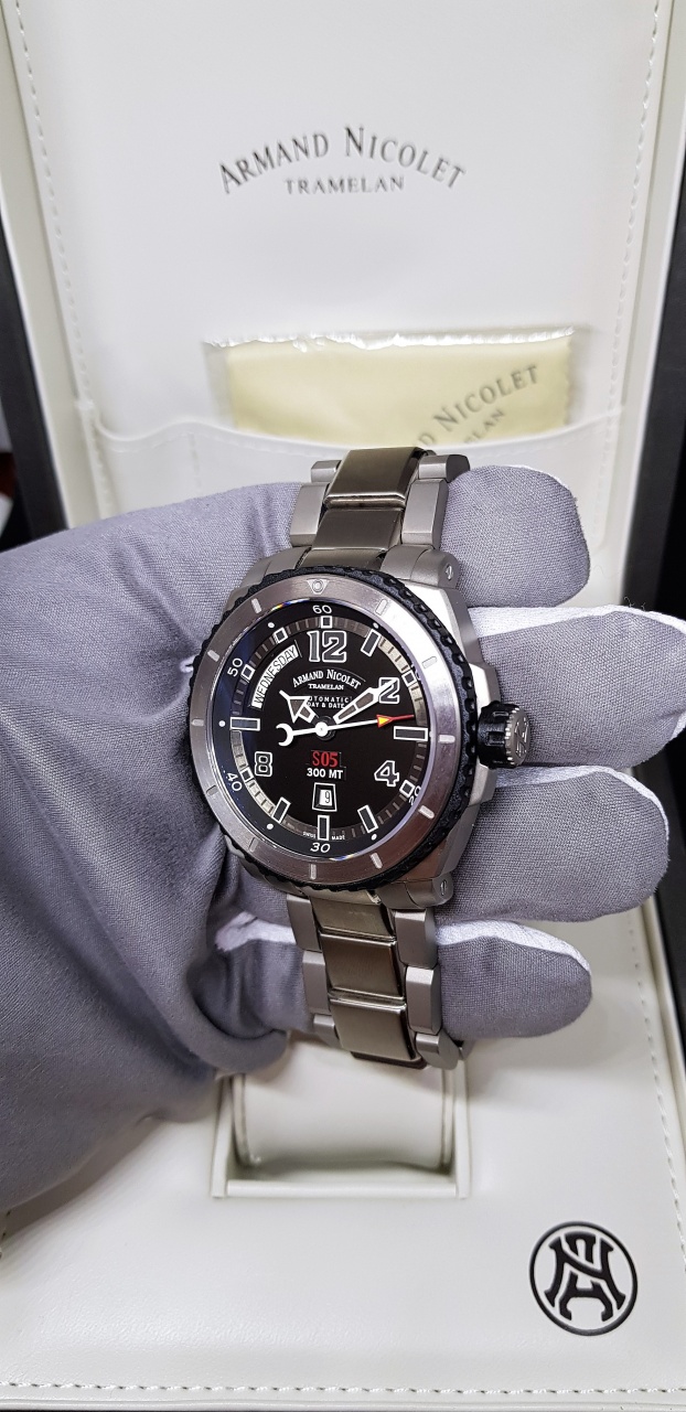 Пол: мужские Год покупки: 2018 Новые часы, состояние: N (новые в пленках) http://forum.watch.ru/images/market-question.png Цена: 75 000 руб. (продажа) Коробка: есть Документы: есть http://www.europastarwatch.ru/IMG/ar...jpg?1302038717 В ПРОДАЖЕ ТИТАНОВЫЕ ДАЙВЕРЫ ARMAND NICOLET - S05 DAY & DATE, 300м водозащита. http://forum.watch.ru/attachment.php...1&d=1516548341 http://forum.watch.ru/attachment.php...1&d=1516548341 Технические характеристики Тип механизма: механический с автоподзаводом Калибр: AN 2834-2 (доработанный ETA 2834-2 ) Количество камней: 25 Корпус: Титан Циферблат: черный Браслет: Титан, 3х рядный Застежка браслета: "бабочка" Водозащита: 300метров Подсветка: люминесцентные стрелки и метки Стекло: сапфировое с антибликовым покрытием Габаритные размеры: D 44мм, толщина 14мм Задняя крышка: завинчивающаяся Замечательный спортивный дайвер на каждый день! Часы очень легкие за счет того что корпус и браслет выполнен из титанового сплава! Циферблат цвета «мокрый асфальт» защищен сапфировым стеклом с антибликовым покрытием. Безель, заводная головка и кнопки декорированы каучуковыми вставками. Индикация числа и дня недели. Заднюю крышку украшает искусная гравировка с изображением рыбки. Часы очень хорошо смотрятся на запястье от 18 до 20 см! Полный комплект - 2 коробки, инструкции, мягкая салфетка, гарантийная карта, все бирки, Официальный ритейл - 4800 USD. Часы в наличии в Санкт-Петербурге, быстрая отправка с курьерской почтой в любой город за 1-3 дня. Отзывы обо мне можно почитать в соответствующей теме Отзывы покупателей - Отзывы о часовых магазинах Фото сделаны на женской руке 18.5 см Вложение 2192387Вложение 2192388Вложение 2192389Вложение 2192390Вложение 2192391Вложение 2192392Вложение 2192393Вложение 2192394Вложение 2192395Вложение 2192396 |